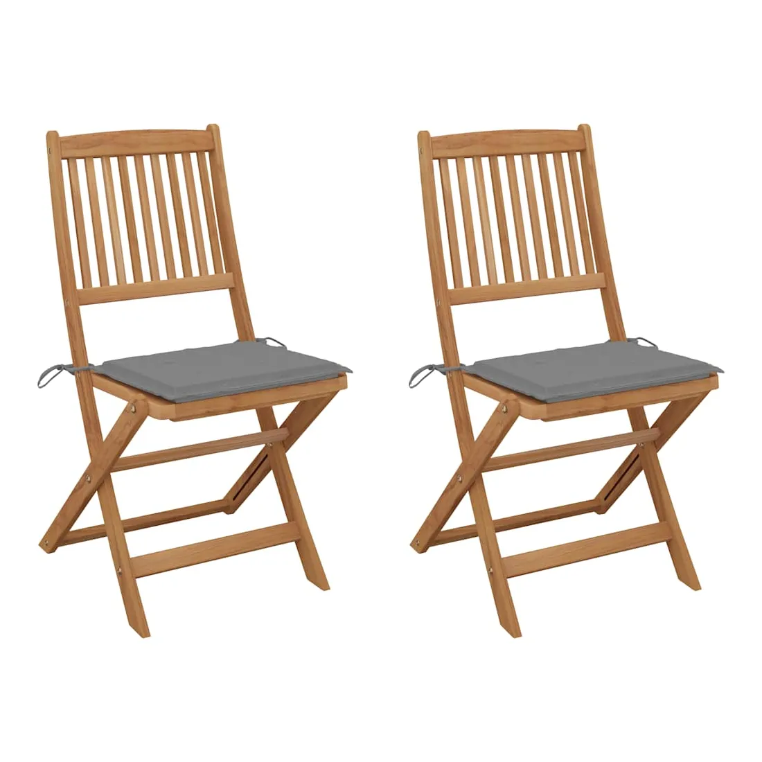 Chaises pliables de jardin lot de 2 avec coussins Bois d'acacia