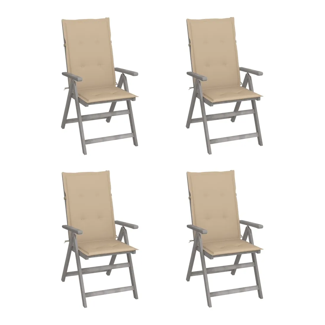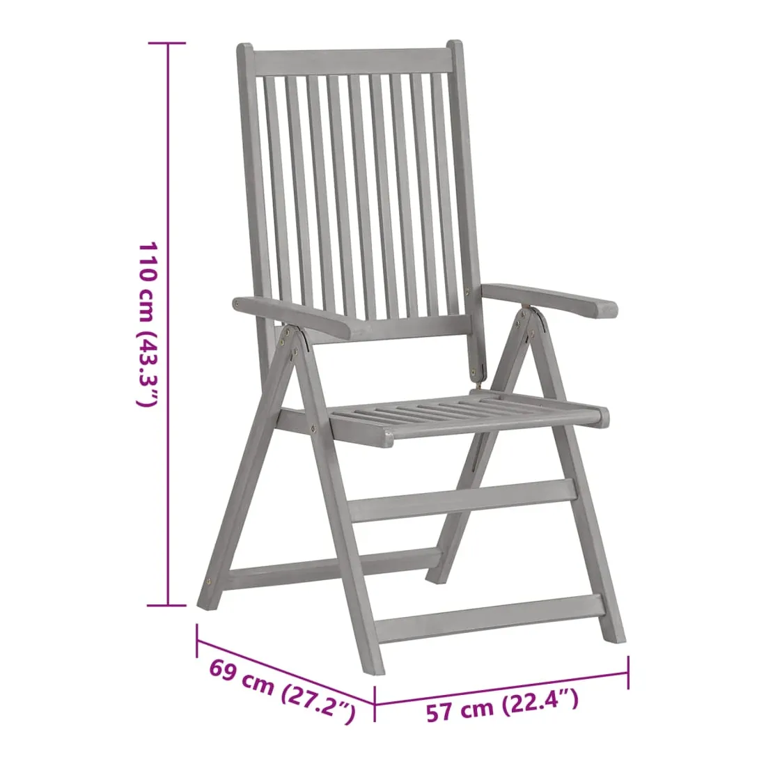 Cet ensemble de chaises inclinables de jardin à la mode avec coussins augmente le confort de votre espace extérieur ! Ces fauteuils sont en bois d'acacia massif à la finition délavé gris, un bois dur aux grains denses. Ces chaises d'extérieur magnifiquement conçues sont stables, durables et accrocheuses. Le dossier de la chaise peut être ajusté en 5 réglages d'inclinaison, de sorte que vous puissiez toujours trouver la position la plus confortable selon vos préférences. De plus, les coussins fournis offrent un confort supplémentaire lors de la détente ou du dîner. Chaque coussin a une bande élastique et deux jeux de cordes pour le fixer fermement sur la chaise. Ces chaises sont parfaites pour dîner en famille ou simplement profiter du beau temps dans votre jardin.