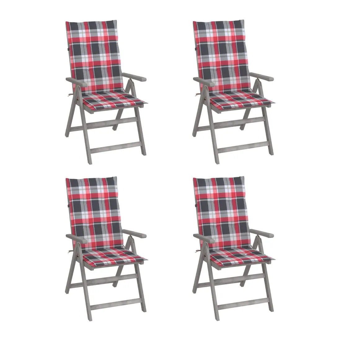 Cet ensemble de chaises inclinables de jardin à la mode avec coussins augmente le confort de votre espace extérieur ! Ces fauteuils sont en bois d'acacia massif à la finition délavé gris, un bois dur aux grains denses. Ces chaises d'extérieur magnifiquement conçues sont stables, durables et accrocheuses. Le dossier de la chaise peut être ajusté en 5 réglages d'inclinaison, de sorte que vous puissiez toujours trouver la position la plus confortable selon vos préférences. De plus, les coussins fournis offrent un confort supplémentaire lors de la détente ou du dîner. Chaque coussin a une bande élastique et deux jeux de cordes pour le fixer fermement sur la chaise. Ces chaises sont parfaites pour dîner en famille ou simplement profiter du beau temps dans votre jardin.