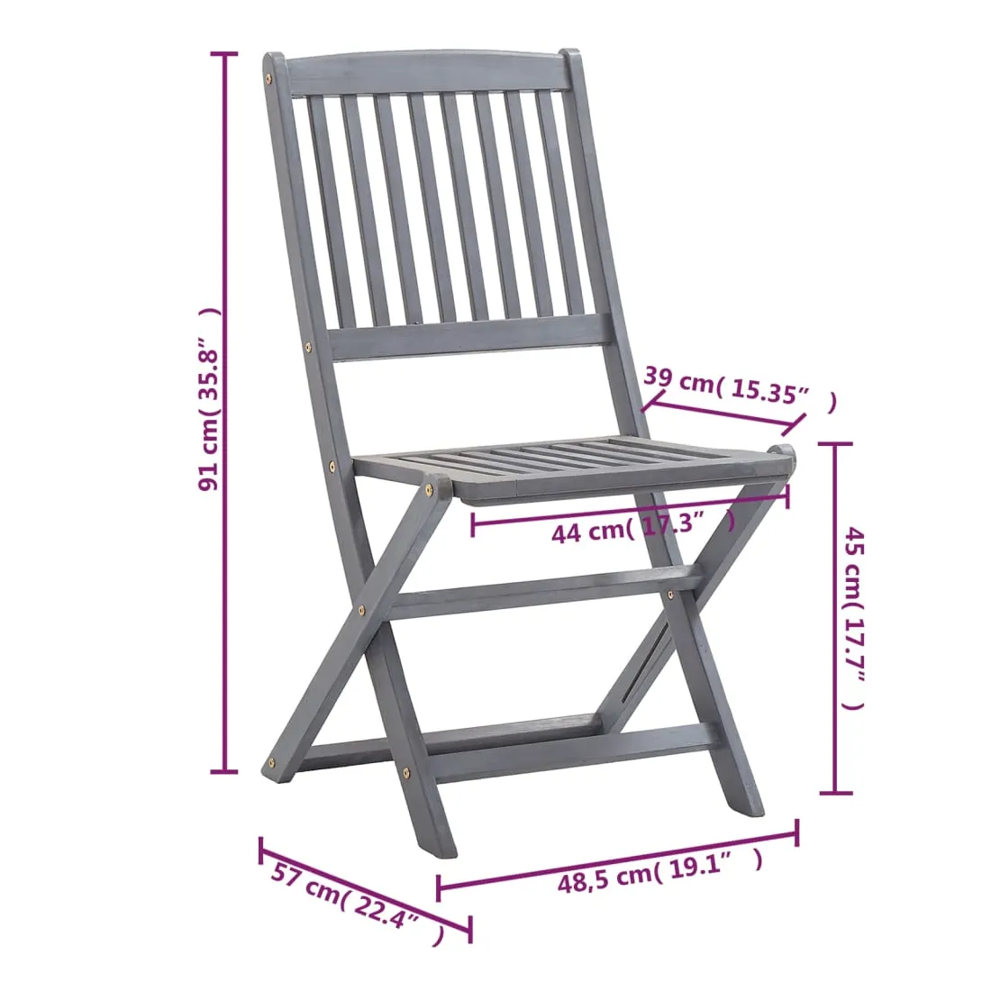 vidaXLCet ensemble de chaises de salle à manger en bois contemporain avec coussins ajoute une touche de style naturel à votre jardin, terrasse ou patio. Cet ensemble de chaises pliables est un excellent choix pour les repas. Ces chaises de salle à manger sont faites de bois d’acacia massif, un bois dur tropical, les rendant résistantes aux intempéries et durables pour des années d’utilisation. Le bois d’acacia massif a la force de soutenir le poids et de résister à l’usure du temps. La surface grise délavée est facile à nettoyer avec un chiffon humide. Les chaises peuvent être repliées pour économiser de l’espace lorsqu'elles ne sont pas utilisées. De plus, les coussins inclus offrent un confort supplémentaire lors des moments de détente ou des repas. Chaque coussin comporte deux ensembles de cordes pour le fixer fermement à la chaise.