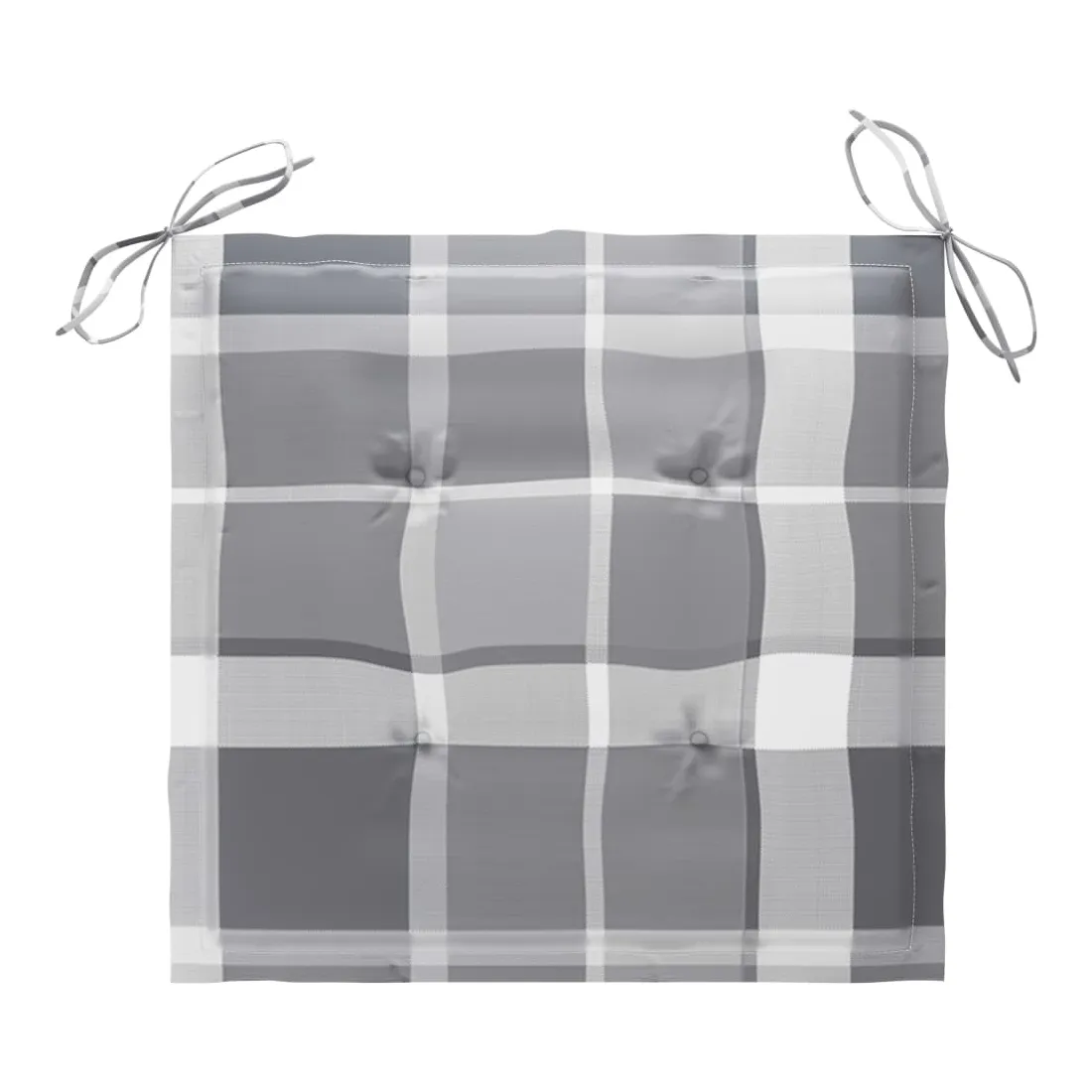 - Le coussin présente un motif à carreaux gris