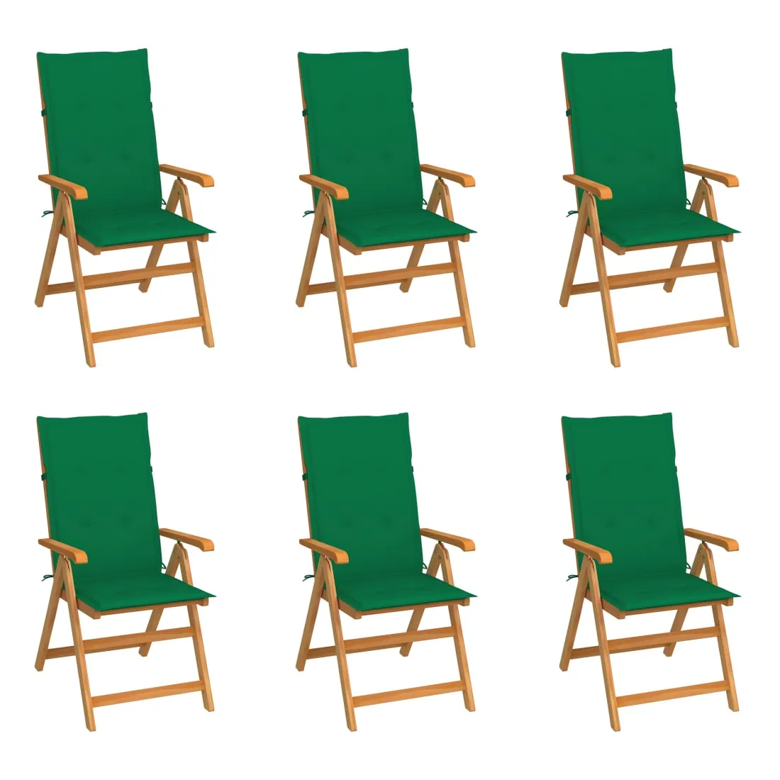 Chaises de jardin lot de 6 avec coussins vert Bois teck massif