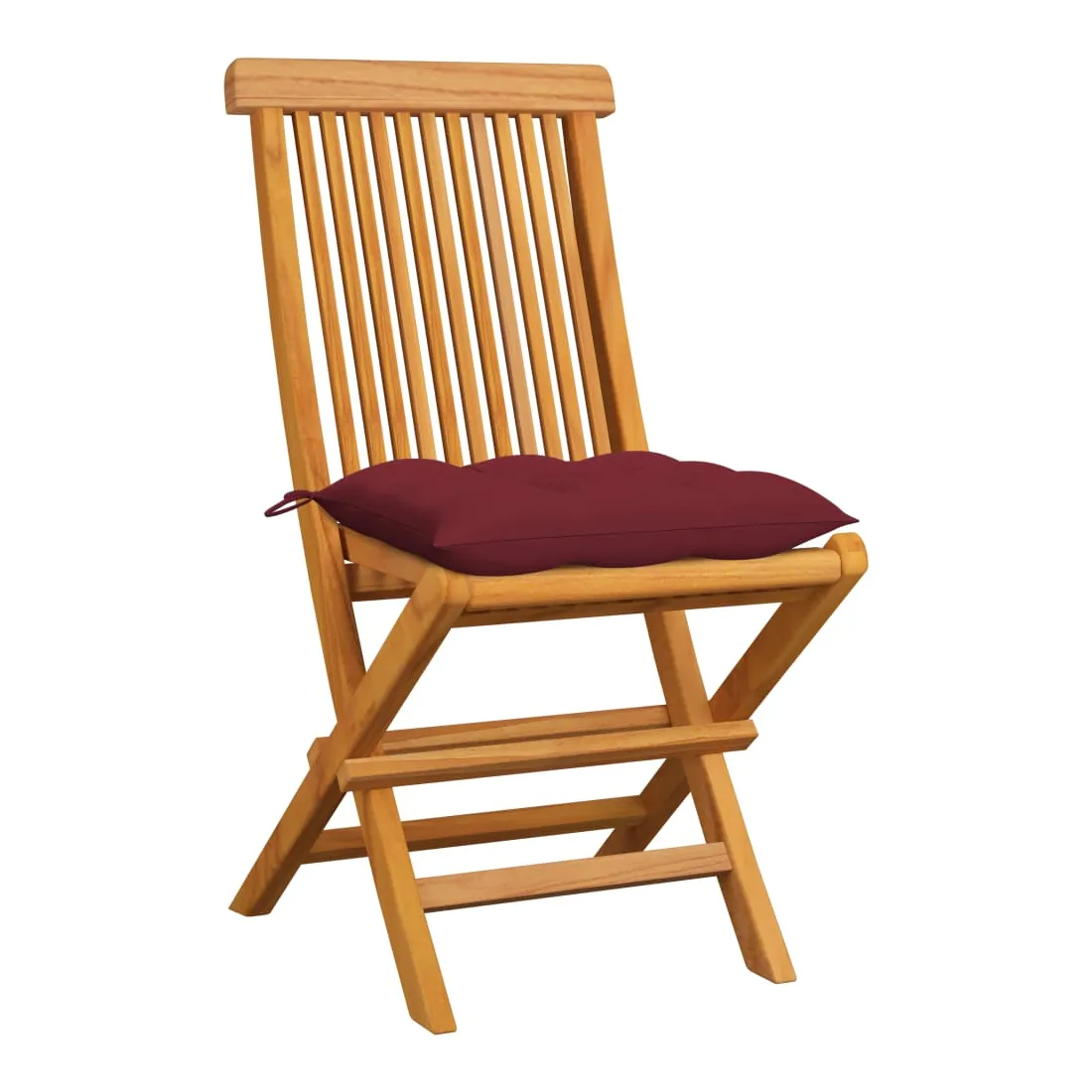 Chaises de jardin avec coussins rouge bordeaux lot de 6 Teck