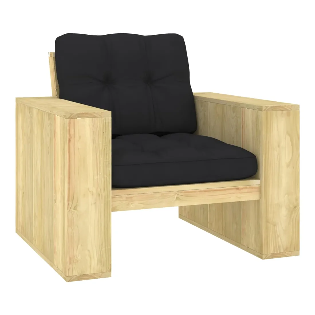 Cette confortable et élégante chaise de jardin en bois avec coussins ajoute une touche de charme rustique à votre jardin ou votre patio. Fabriquée en bois de pin imprégné, la chaise d'extérieur se distingue par sa durabilité et sa résistance aux intempéries. Vous pouvez la placer dans le jardin ou sur votre terrasse extérieure pour profiter de livres et d'une tasse de café. De plus, les coussins inclus sont pratiques et ont une fonction décorative. Remarque : Afin de prolonger la durée de vie de vos meubles d'extérieur, nous vous recommandons de les nettoyer régulièrement et de ne pas les laisser à l'extérieur sans protection inutilement.Nettoyage : Utiliser une solution savonneuse douce.Stockage : Si possible, stockez dans un endroit frais et sec à l'intérieur. Si le produit est stocké à l'extérieur, protégez-le avec une housse imperméable. Essuyez et séchez l'excès d'eau ou de neige des surfaces planes après la pluie ou une chute de neige. Permettez une circulation d'air suffisante afin d'éviter les dommages liés à l'humidité.