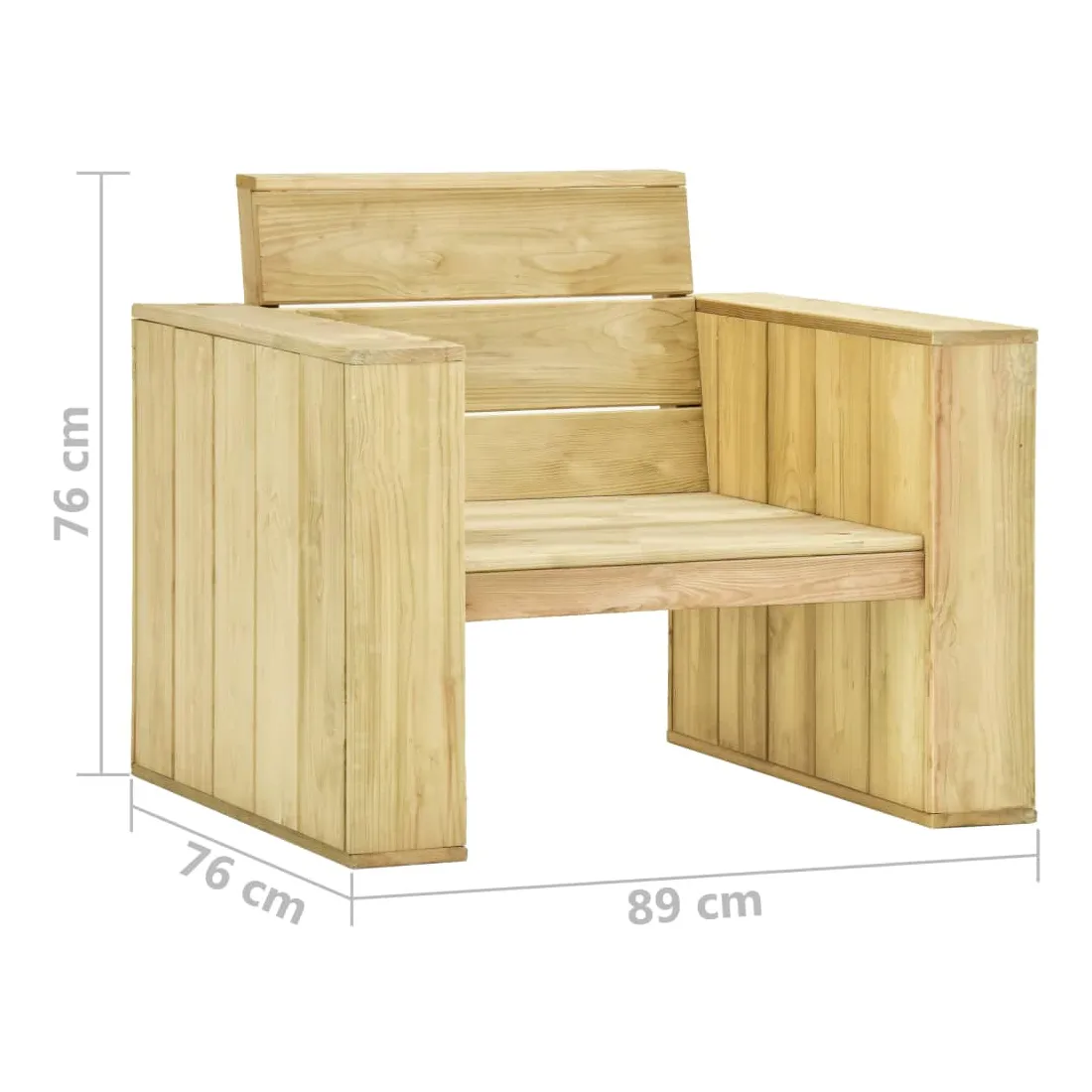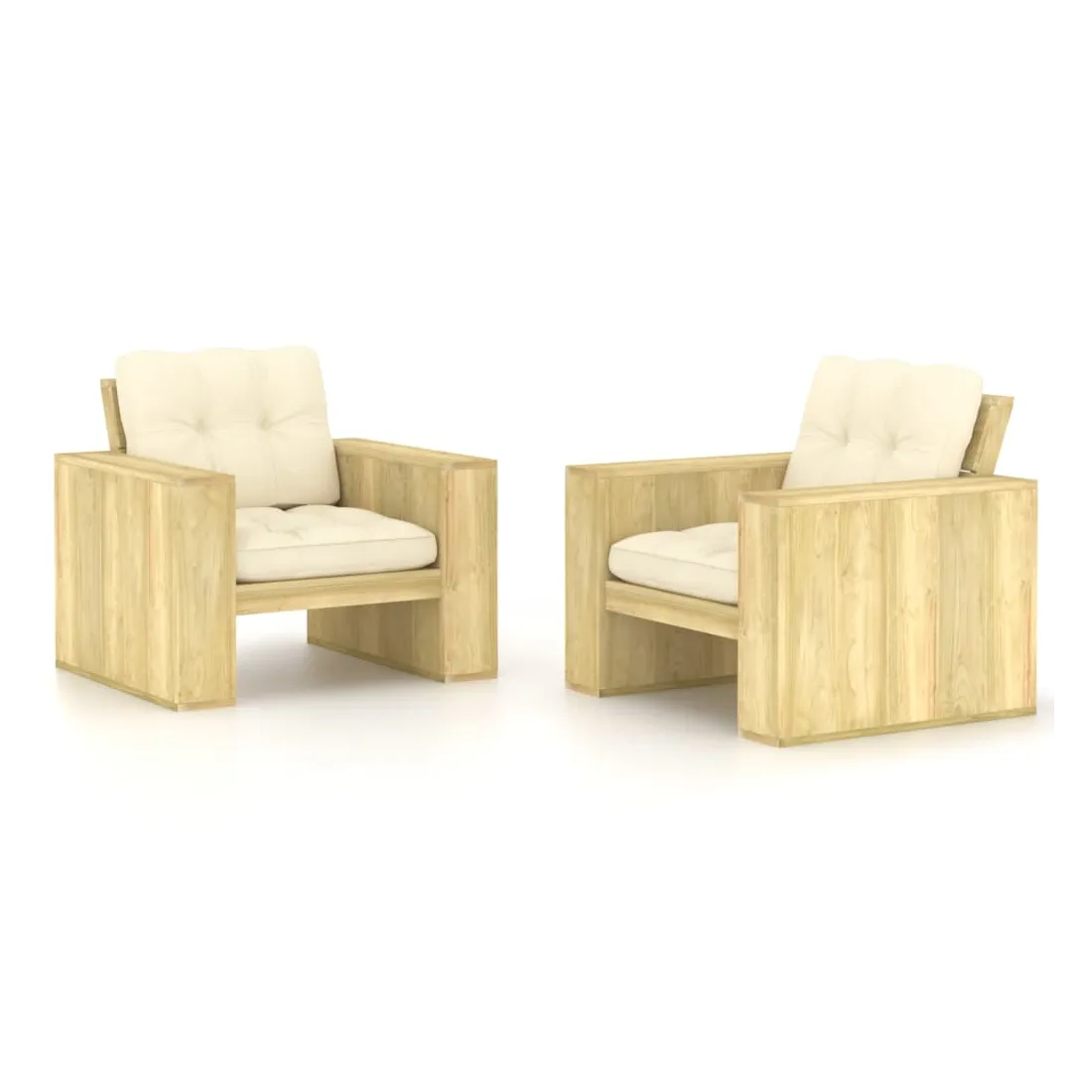 Ces confortables et élégantes chaises de jardin en bois avec coussins ajoutent une touche de charme rustique à votre jardin ou votre patio. Fabriquées en bois de pin imprégné, les chaises d'extérieur se distinguent par leur durabilité et leur résistance aux intempéries. Vous pouvez les placer dans le jardin ou sur votre terrasse extérieure pour profiter de livres et d'une tasse de café. De plus, les coussins inclus sont pratiques et ont une fonction décorative. Remarque : Afin de prolonger la durée de vie de vos meubles d'extérieur, nous vous recommandons de les nettoyer régulièrement et de ne pas les laisser à l'extérieur sans protection inutilement.Nettoyage : Utiliser une solution savonneuse douce.Stockage : Si possible, stockez dans un endroit frais et sec à l'intérieur. Si le produit est stocké à l'extérieur, protégez-le avec une housse imperméable. Essuyez et séchez l'excès d'eau ou de neige des surfaces planes après la pluie ou une chute de neige. Permettez une circulation d'air suffisante afin d'éviter les dommages liés à l'humidité.