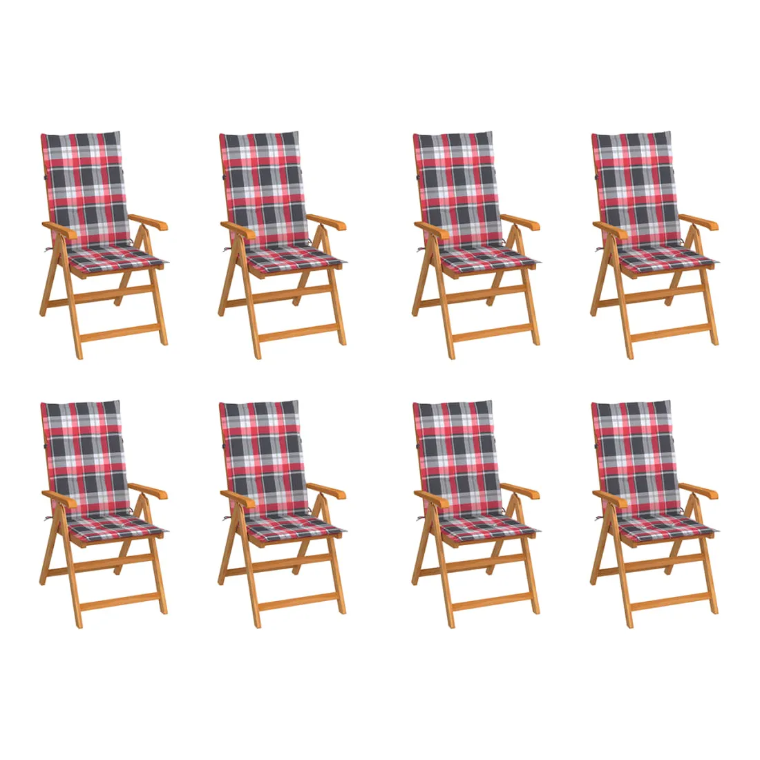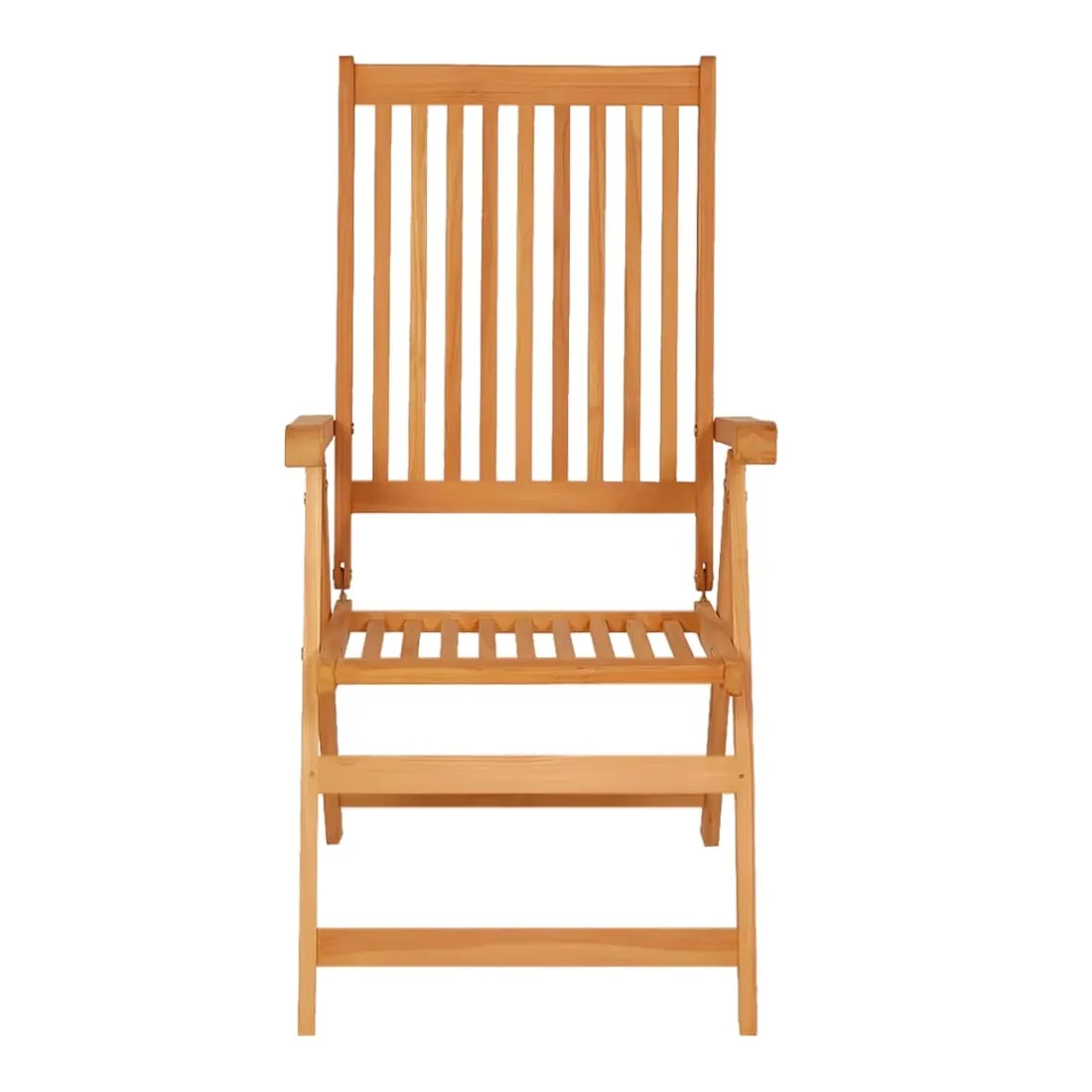 Cet ensemble de chaises de jardin élégantes avec coussins en teck sera un excellent supplément à votre jardin ou terrasse. Elles sont idéale pour vous asseoir pour discuter avec la famille et les amis ou tout simplement profiter du bon temps. La chaise inclinable et pliable en bois a un design classique. Fabriquée en bois dur de teck extrêmement durable, cette pièce de meuble en teck a été chevronnée, séchée au four puis finement poncée pour lui donner un aspect très lisse. Le bois de teck est connu pour sa résistance exceptionnelle aux intempéries, ce qui le rend bien plus adapté aux meubles de jardin que tout autre type de bois. Le bois de teck est le choix idéal si vous souhaitez acheter un meuble de jardin durable. Le dossier du fauteuil peut être réglé en 7 réglages inclinables, de sorte que vous puissiez toujours trouver la position la plus confortable. Il est également léger, ce qui le rend facile à déplacer. La chaise de salle à manger peut être pliée pour économiser de l’espace lorsqu'elle n’est pas utilisée. De plus, les coussins fournis offrent un confort supplémentaire. Chaque coussin dispose d’une bande élastique et de deux ensembles de cordes pour le fixer solidement sur la chaise. Remarque : afin de prolonger la durée de vie des meubles d'extérieur, nous vous recommandons de les protéger avec une housse imperméable.