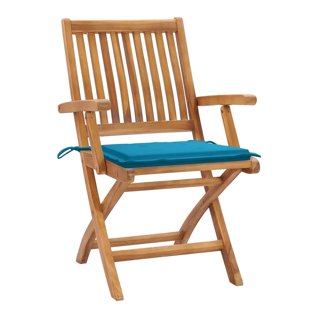 Cet ensemble de chaises de jardin en bois présente un design intemporel. Les chaises d’extérieur conviennent à tous les environnements, tels que les maisons, les bureaux, les bars et les cafés, grâce à leur design simple mais élégant. Fabriqué en bois dur de teck extrêmement durable, cet ensemble de meubles en teck a été chevronné, séché au four puis finement poncé pour lui donner un aspect très lisse. Le bois de teck est connu pour sa résistance exceptionnelle aux intempéries, ce qui le rend bien plus adapté aux meubles de jardin que tout autre type de bois. Le bois de teck est le choix idéal si vous souhaitez acheter un meuble de jardin durable. Grâce à la surface sablée, les chaises de salle à manger sont résistantes aux intempéries et faciles à nettoyer. Elles peuvent également être pliées pour économiser de l’espace de stockage lorsqu'elles ne sont pas utilisées. De plus, les coussins fournis offrent un confort supplémentaire. Chaque coussin dispose de 2 ensembles de cordes pour le fixer solidement sur la chaise. Remarque : afin de prolonger la durée de vie de vos meubles d'extérieur, nous vous recommandons de les nettoyer régulièrement et de ne pas les laisser à l'extérieur sans protection inutilement.Nettoyage : utiliser une solution savonneuse douceStockage : si possible, stockez dans un endroit frais et sec à l'intérieur. Si le produit est stocké à l'extérieur, protégez-le avec une housse imperméable. Essuyez et séchez l'excès d'eau ou de neige des surfaces planes après la pluie ou une chute de neige. Permettez une circulation d'air suffisante afin d'éviter les dommages liés à l'humidité.
