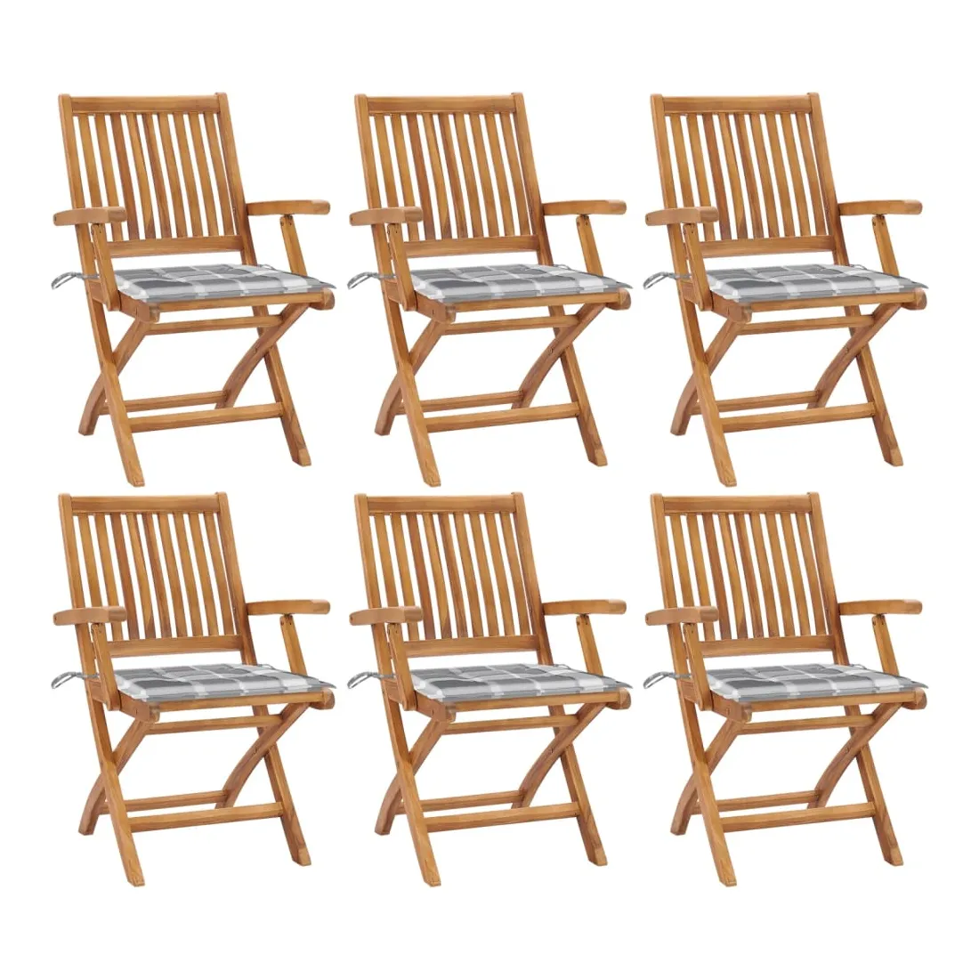 Cet ensemble de chaises de jardin en bois présente un design intemporel. Les chaises d’extérieur conviennent à tous les environnements, tels que les maisons, les bureaux, les bars et les cafés, grâce à leur design simple mais élégant. Fabriqué en bois dur de teck extrêmement durable, cet ensemble de meubles en teck a été chevronné, séché au four puis finement poncé pour lui donner un aspect très lisse. Le bois de teck est connu pour sa résistance exceptionnelle aux intempéries, ce qui le rend bien plus adapté aux meubles de jardin que tout autre type de bois. Le bois de teck est le choix idéal si vous souhaitez acheter un meuble de jardin durable. Grâce à la surface sablée, les chaises de salle à manger sont résistantes aux intempéries et faciles à nettoyer. Elles peuvent également être pliées pour économiser de l’espace de stockage lorsqu'elles ne sont pas utilisées. De plus, les coussins fournis offrent un confort supplémentaire. Chaque coussin dispose de 2 ensembles de cordes pour le fixer solidement sur la chaise. Remarque : afin de prolonger la durée de vie de vos meubles d'extérieur, nous vous recommandons de les nettoyer régulièrement et de ne pas les laisser à l'extérieur sans protection inutilement.Nettoyage : utiliser une solution savonneuse douceStockage : si possible, stockez dans un endroit frais et sec à l'intérieur. Si le produit est stocké à l'extérieur, protégez-le avec une housse imperméable. Essuyez et séchez l'excès d'eau ou de neige des surfaces planes après la pluie ou une chute de neige. Permettez une circulation d'air suffisante afin d'éviter les dommages liés à l'humidité.