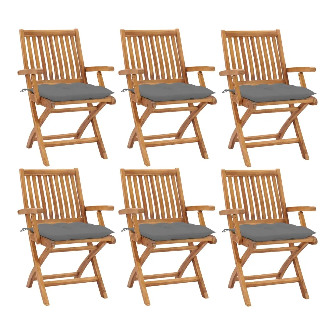 Cet ensemble de chaises de jardin en bois présente un design intemporel. Les chaises d’extérieur conviennent à tous les environnements, tels que les maisons, les bureaux, les bars et les cafés, grâce à leur design simple mais élégant. Fabriqué en bois dur de teck extrêmement durable, cet ensemble de meubles en teck a été chevronné, séché au four puis finement poncé pour lui donner un aspect très lisse. Le bois de teck est connu pour sa résistance exceptionnelle aux intempéries, ce qui le rend bien plus adapté aux meubles de jardin que tout autre type de bois. Le bois de teck est le choix idéal si vous souhaitez acheter un meuble de jardin durable. Grâce à la surface sablée, les chaises de salle à manger sont résistantes aux intempéries et faciles à nettoyer. Elles peuvent également être pliées pour économiser de l’espace de stockage lorsqu'elles ne sont pas utilisées. De plus, les coussins fournis offrent un confort supplémentaire. Chaque coussin dispose de 2 ensembles de cordes pour le fixer solidement sur la chaise. Remarque : afin de prolonger la durée de vie de vos meubles d'extérieur, nous vous recommandons de les nettoyer régulièrement et de ne pas les laisser à l'extérieur sans protection inutilement.Nettoyage : utiliser une solution savonneuse douceStockage : si possible, stockez dans un endroit frais et sec à l'intérieur. Si le produit est stocké à l'extérieur, protégez-le avec une housse imperméable. Essuyez et séchez l'excès d'eau ou de neige des surfaces planes après la pluie ou une chute de neige. Permettez une circulation d'air suffisante afin d'éviter les dommages liés à l'humidité.