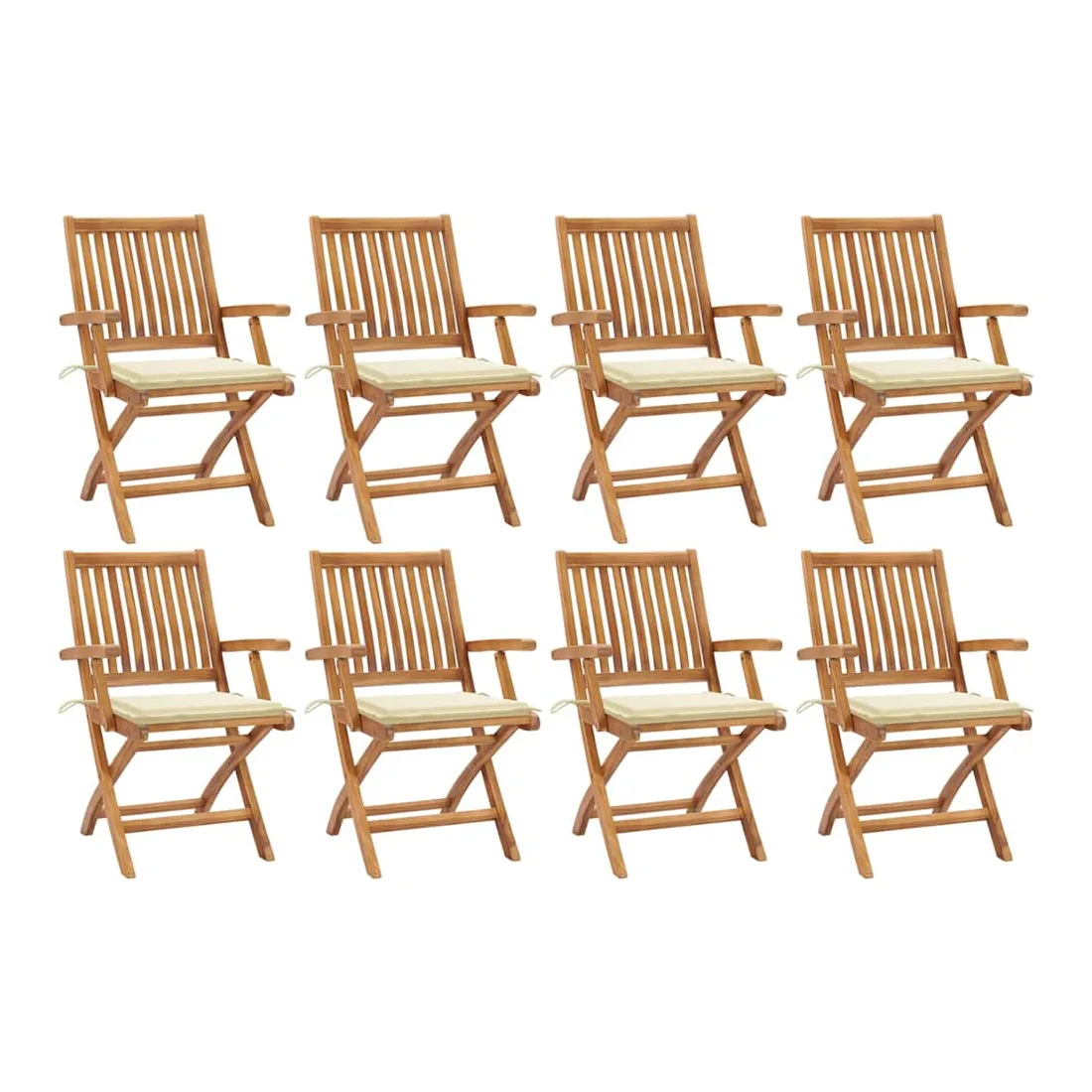 Chaises pliables de jardin avec coussins lot de 8 Teck solide