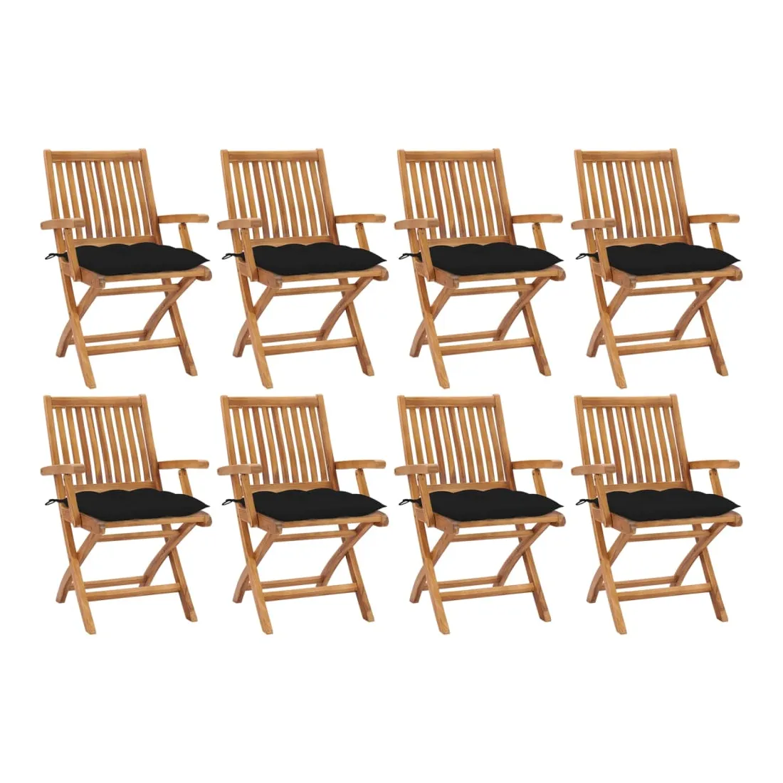 Chaises pliables de jardin avec coussins lot de 8 Teck solide