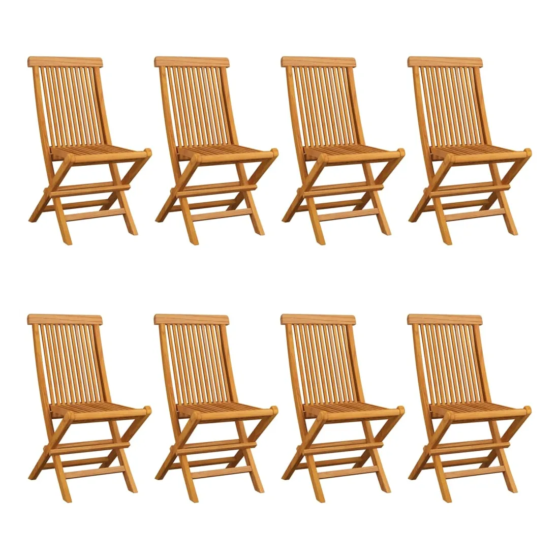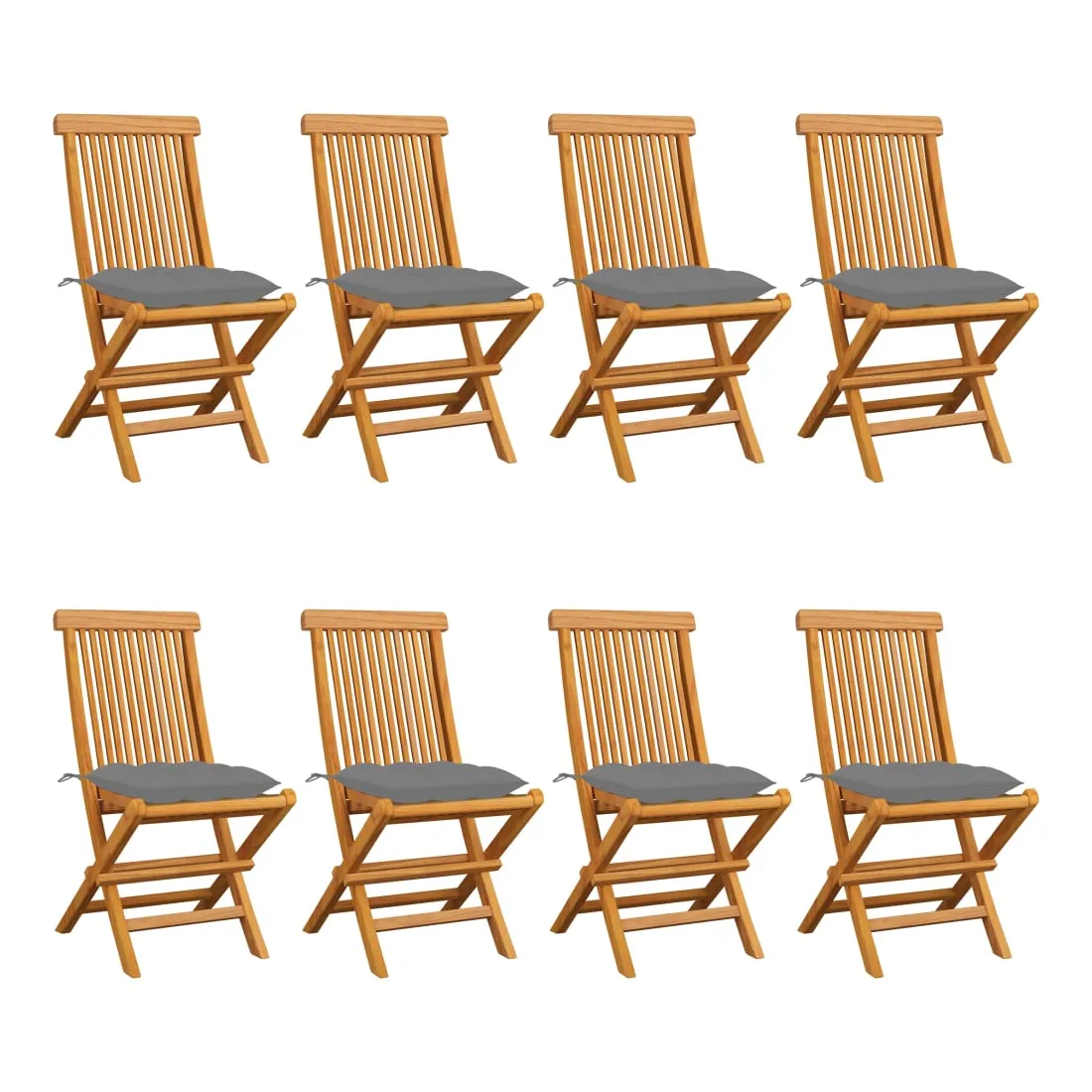 Ces chaises de jardin pliables en bois, au design simple pourtant élégant, sont conçues pour vous offrir une expérience d'assise confortable. Fabriquée en bois dur de teck extrêmement durable, cette pièce de meuble en teck a été chevronnée, séchée au four puis finement poncée pour lui donner un aspect très lisse. Le bois de teck est connu pour sa résistance exceptionnelle aux intempéries, ce qui le rend bien plus adapté aux meubles de jardin que tout autre type de bois. Le bois de teck est le choix idéal si vous souhaitez acheter un meuble de jardin durable. La surface poncée est facile à nettoyer avec un chiffon humide. Ces chaises de salle à manger de jardin sont également légères, ce qui les rend complètement flexibles et faciles à déplacer. Les chaises d’extérieur peuvent être facilement repliées lorsqu'elles ne sont pas utilisées. De plus, les coussins de siège bien rembourrés inclus offrent également un confort d'assise supplémentaire. Remarque : Afin de prolonger la durée de vie de vos meubles d'extérieur, nous vous recommandons de les nettoyer régulièrement et de ne pas les laisser à l'extérieur sans protection inutilement.Nettoyage : Utiliser une solution savonneuse douceStockage : Si possible, stockez dans un endroit frais et sec à l'intérieur. Si le produit est stocké à l'extérieur, protégez-le avec une housse imperméable. Essuyez et séchez l'excès d'eau ou de neige des surfaces planes après la pluie ou une chute de neige. Permettez une circulation d'air suffisante afin d'éviter les dommages liés à l'humidité.