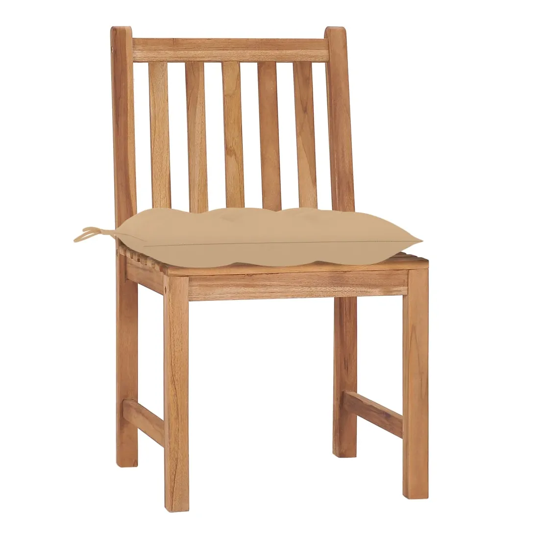 Cet ensemble de chaises de jardin en bois robuste sera un endroit idéal pour vous détendre et profiter du soleil dans votre jardin ou patio. Fabriquée en bois dur de teck extrêmement durable, cette pièce de meuble en teck a été chevronnée, séchée au four puis finement poncée pour lui donner un aspect très lisse. Le bois de teck est connu pour sa résistance exceptionnelle aux intempéries, ce qui le rend bien plus adapté aux meubles de jardin que tout autre type de bois. Le bois de teck est le choix idéal si vous souhaitez acheter un meuble de jardin durable. Une belle finition à base d’eau est appliquée pour donner au bois une couleur chaude. Les chaises d’extérieur stables disposent d’un aspect raffiné qui peut instantanément se fondre dans n’importe quel espace de vie. Le coussin inclus est pratique et a une fonction décorative. Remarque : Afin de prolonger la durée de vie de vos meubles d'extérieur, nous vous recommandons de les nettoyer régulièrement et de ne pas les laisser à l'extérieur sans protection inutilement.Nettoyage : Utiliser une solution savonneuse douceStockage : Si possible, stockez dans un endroit frais et sec à l'intérieur. Si le produit est stocké à l'extérieur, protégez-le avec une housse imperméable. Essuyez et séchez l'excès d'eau ou de neige des surfaces planes après la pluie ou une chute de neige. Permettez une circulation d'air suffisante afin d'éviter les dommages liés à l'humidité.