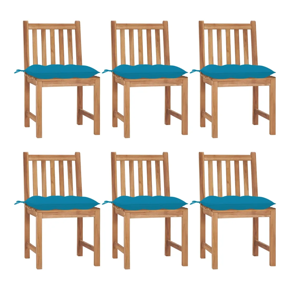 Chaises de jardin lot de 6 avec coussins Bois de teck massif