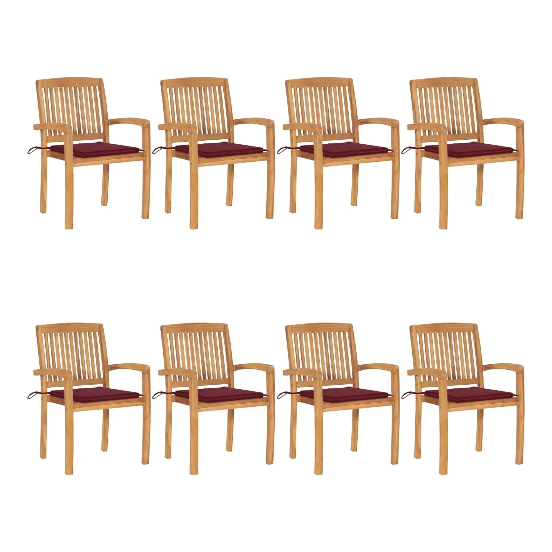 Chaises de jardin empilables avec coussins lot de 8 Teck solide