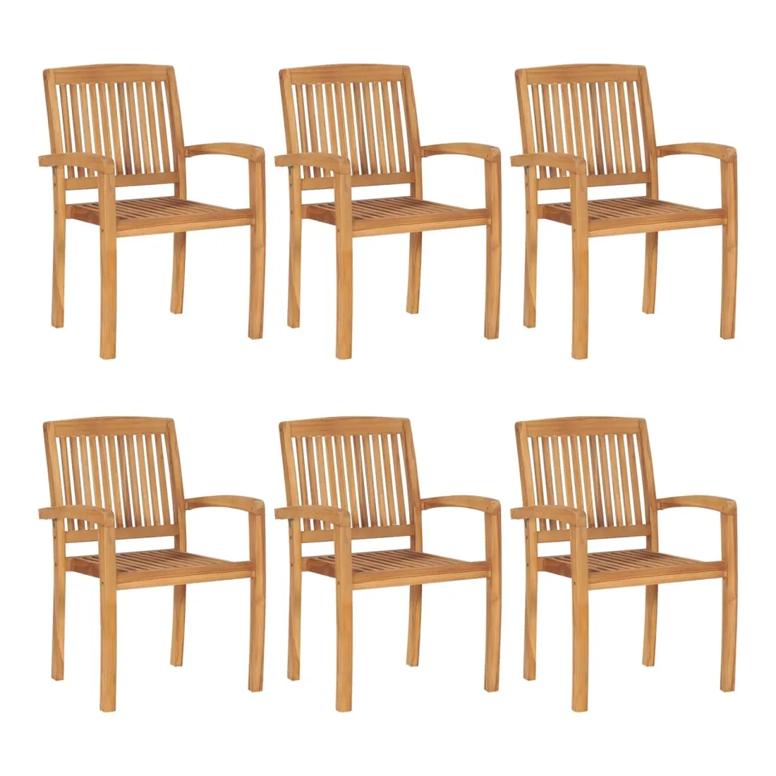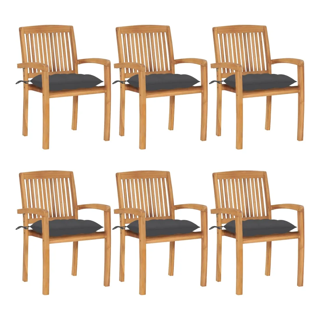Chaises de jardin empilables avec coussins lot de 6 Teck solide