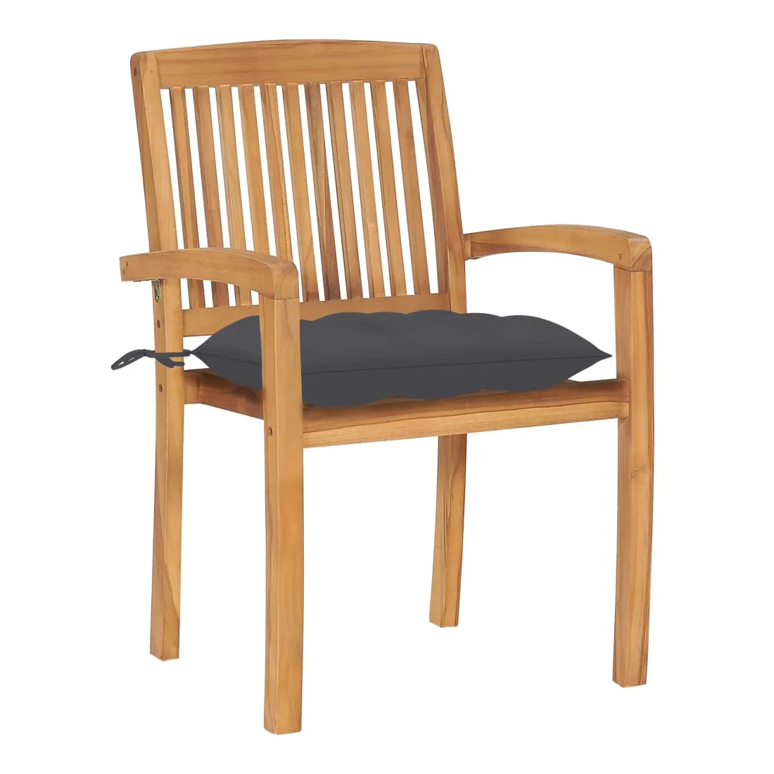 Ajoutez une touche de charme rustique à votre salle à manger, jardin ou terrasse avec cet ensemble de chaises de jardin empilables avec ensemble de coussins ! La chaise de salle à manger élève votre espace de vie intérieur ou extérieur à un niveau supérieur avec un design à lattes et élégant. Cet ensemble de meubles en teck est fabriqué à partir de bois dur de teck extrêmement durable et est chevronné, séché au four et poncé finement pour lui donner un aspect très lisse. Le bois de teck est connu pour sa solidité et sa résistance aux intempéries exceptionnelles, ce qui le rend bien plus adapté aux meubles de jardin que tout autre type de bois. Le bois de teck est le choix parfait si vous souhaitez acheter un meuble de jardin durable. Il est facile à entretenir et à nettoyer avec un chiffon humide. De plus, la chaise de salle à manger peut être empilée pour économiser de l'espace de stockage lorsqu'elle n'est pas utilisée. De plus, les coussins inclus offrent un confort supplémentaire. Chaque coussin a 2 jeux de cordes pour le fixer fermement sur la chaise. Remarque : afin de prolonger la durée de vie de vos meubles d'extérieur, nous vous recommandons de les nettoyer régulièrement et de ne pas les laisser à l'extérieur sans protection inutilement.Nettoyage : utiliser une solution savonneuse douceStockage : si possible, stockez dans un endroit frais et sec à l'intérieur. Si le produit est stocké à l'extérieur, protégez-le avec une housse imperméable. Essuyez et séchez l'excès d'eau ou de neige des surfaces planes après la pluie ou une chute de neige. Permettez une circulation d'air suffisante afin d'éviter les dommages liés à l'humidité.