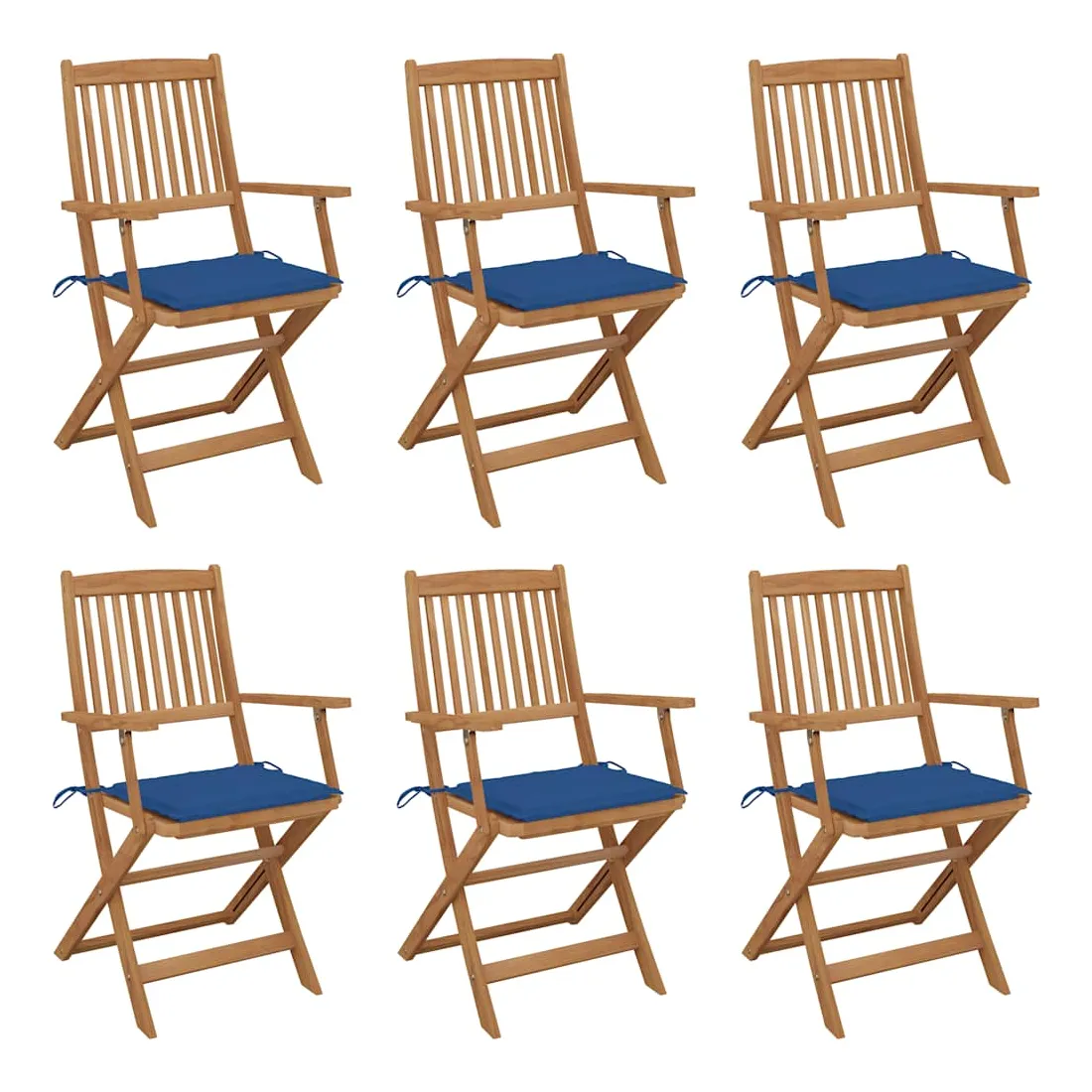 Chaises pliables de jardin lot de 6 avec coussins Bois d'acacia