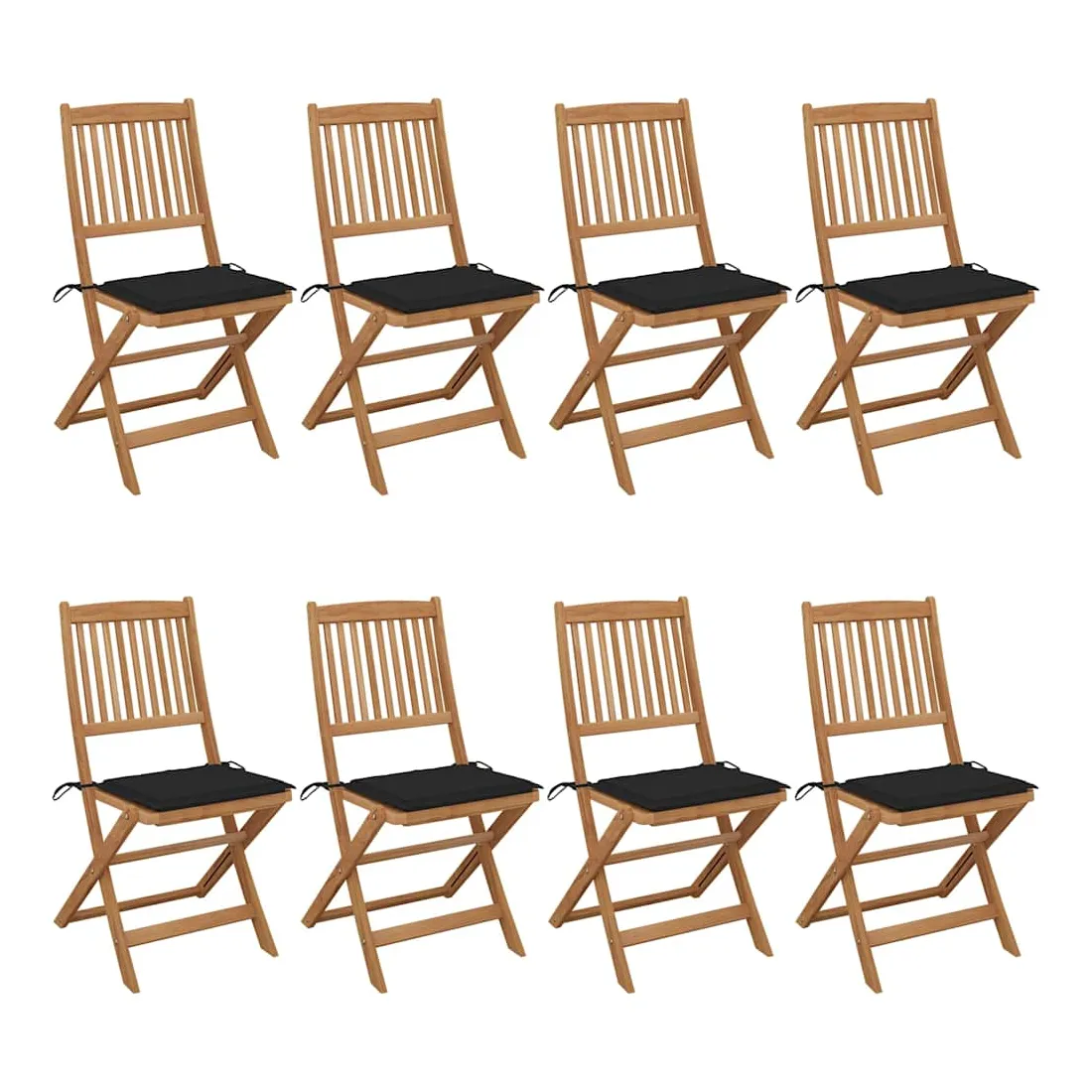 Ces chaises pliables en bois d’acacia massif avec coussins sont un endroit idéal pour vous détendre et profiter du soleil dans le jardin ou sur le patio. Ces chaises de jardin sont fabriquées en bois d’acacia massif, ce qui les rend solides et stables. Le bois d’acacia massif a la force de soutenir le poids et résiste à l’usure du temps. Ainsi, ces chaises d’extérieur offrent des années de détente. De plus, les chaises peuvent être pliées pour économiser de l’espace lorsqu'elles ne sont pas utilisées. Les coussins inclus ajoutent un confort supplémentaire. Chaque coussin comporte deux ensembles de cordes pour le fixer solidement sur la chaise. Remarque : Afin de prolonger la durée de vie de vos meubles d'extérieur, nous vous recommandons de les nettoyer régulièrement et de ne pas les laisser à l'extérieur sans protection inutilement.Nettoyage : Utiliser une solution savonneuse douceStockage : Si possible, stockez dans un endroit frais et sec à l'intérieur. Si le produit est stocké à l'extérieur, protégez-le avec une housse imperméable. Essuyez et séchez l'excès d'eau ou de neige des surfaces planes après la pluie ou une chute de neige. Permettez une circulation d'air suffisante afin d'éviter les dommages liés à l'humidité.