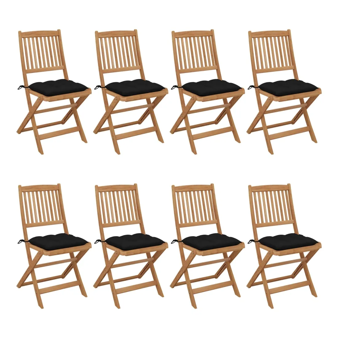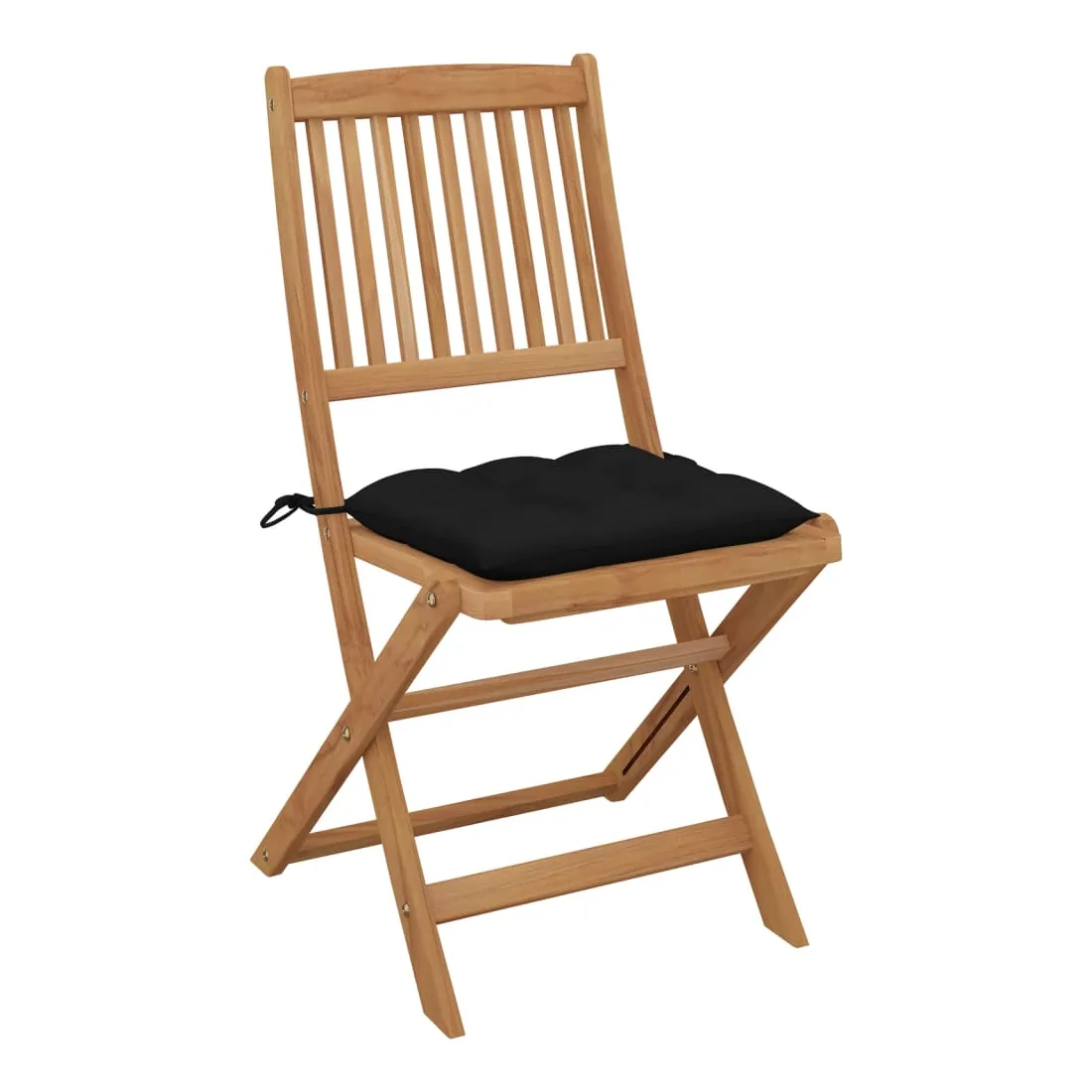 Ces chaises pliables en bois d’acacia massif avec coussins sont un endroit idéal pour vous détendre et profiter du soleil dans le jardin ou sur le patio. Ces chaises de jardin sont fabriquées en bois d’acacia massif, ce qui les rend solides et stables. Le bois d’acacia massif a la force de soutenir le poids et résiste à l’usure du temps. Ainsi, ces chaises d’extérieur offrent des années de détente. De plus, les chaises peuvent être pliées pour économiser de l’espace lorsqu'elles ne sont pas utilisées. Les coussins inclus ajoutent un confort supplémentaire. Chaque coussin comporte deux ensembles de cordes pour le fixer solidement sur la chaise. Remarque : Afin de prolonger la durée de vie de vos meubles d'extérieur, nous vous recommandons de les nettoyer régulièrement et de ne pas les laisser à l'extérieur sans protection inutilement.Nettoyage : Utiliser une solution savonneuse douceStockage : Si possible, stockez dans un endroit frais et sec à l'intérieur. Si le produit est stocké à l'extérieur, protégez-le avec une housse imperméable. Essuyez et séchez l'excès d'eau ou de neige des surfaces planes après la pluie ou une chute de neige. Permettez une circulation d'air suffisante afin d'éviter les dommages liés à l'humidité.