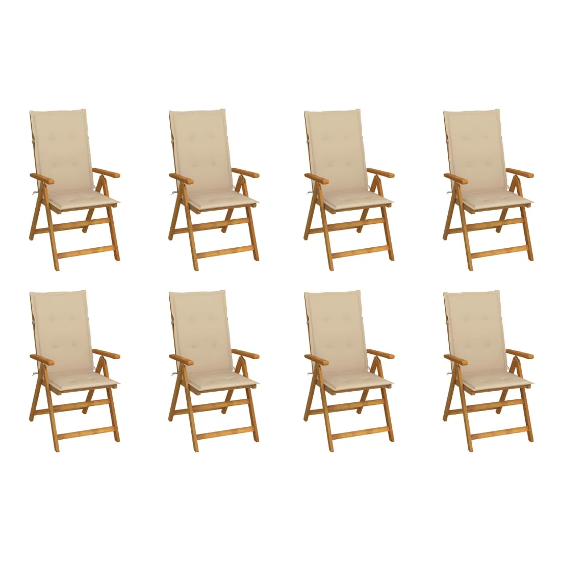Chaises pliables de jardin avec coussins lot de 8 Bois d'acacia