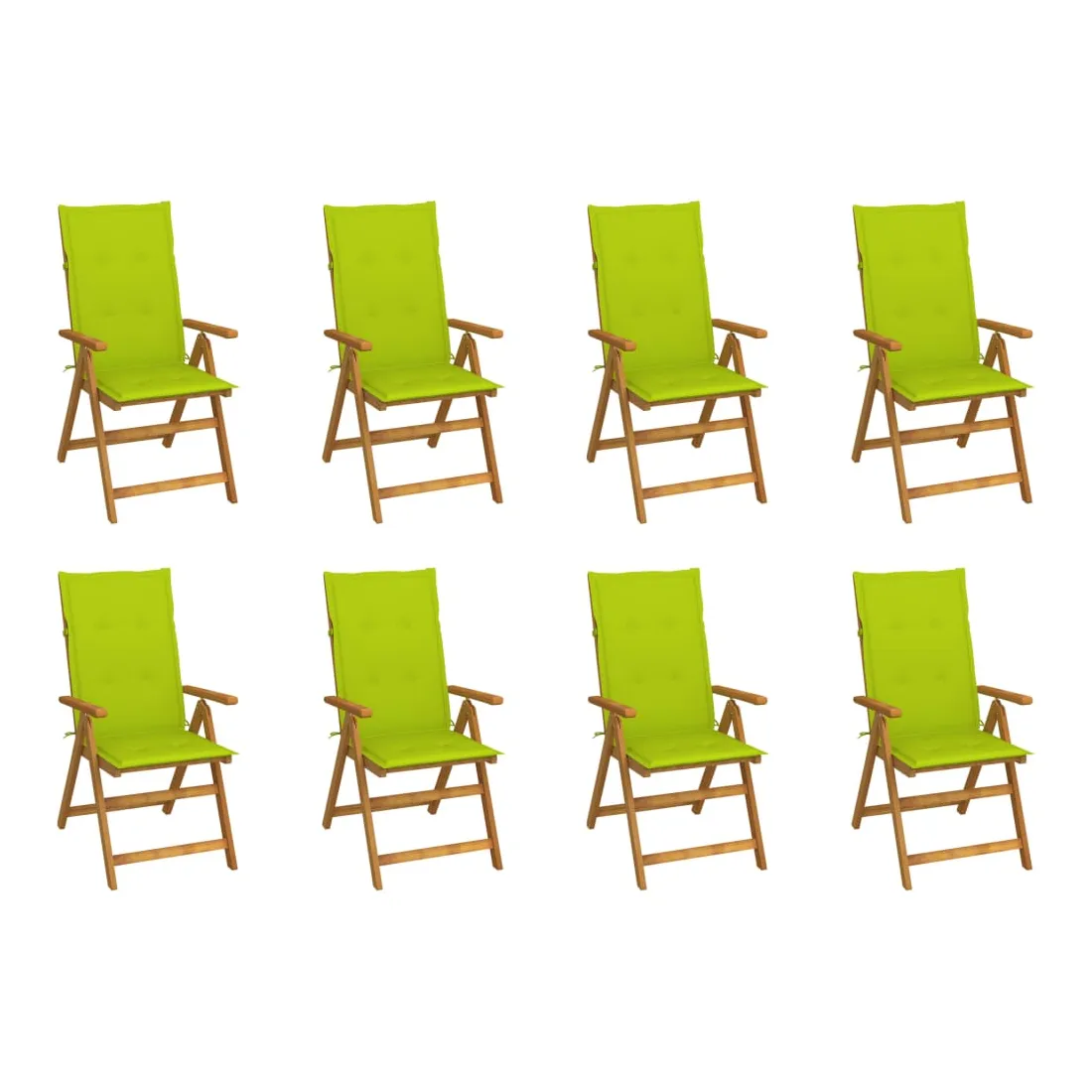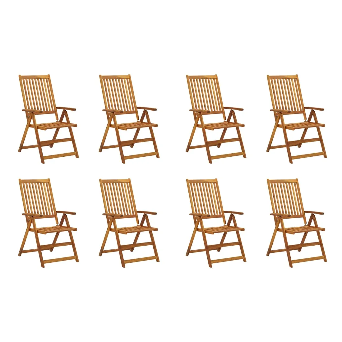 Cet ensemble de chaises de jardin en bois est conçu pour ajouter un look vintage à tout dîner dans votre jardin, sur votre terrasse ou patio. La chaise pliable est fabriquée en bois d’acacia massif, un bois dur tropical, ce qui la rend stable et durable. La surface à finition à l'huile est facile à nettoyer avec un chiffon humide. La chaise de salle à manger peut être réglée à 5 positions, vous offrant un confort d’assise optimal. Elle peut également être pliée pour économiser de l’espace lorsqu'elle n’est pas utilisée. Les coussins inclus offrent un confort supplémentaire. Remarque : afin de prolonger la durée de vie de vos meubles d'extérieur, nous vous recommandons de les nettoyer régulièrement et de ne pas les laisser à l'extérieur sans protection inutilement.Nettoyage : utiliser une solution savonneuse douceStockage : si possible, stockez dans un endroit frais et sec à l'intérieur. Si le produit est stocké à l'extérieur, protégez-le avec une housse imperméable. Essuyez et séchez l'excès d'eau ou de neige des surfaces planes après la pluie ou une chute de neige. Permettez une circulation d'air suffisante afin d'éviter les dommages liés à l'humidité.