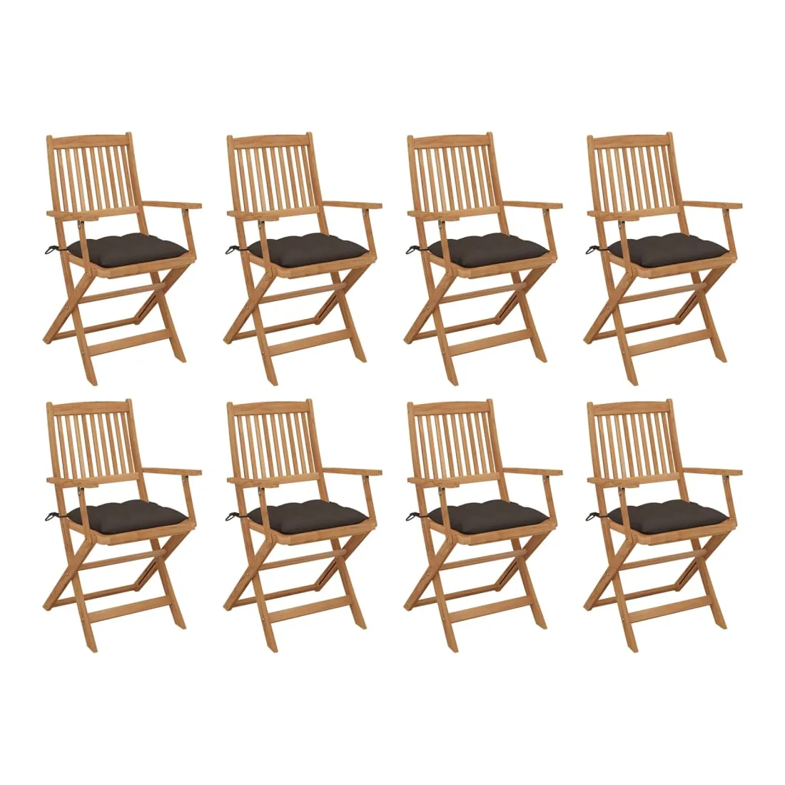 Chaises pliables d'extérieur et coussins lot de 8 Bois d'acacia