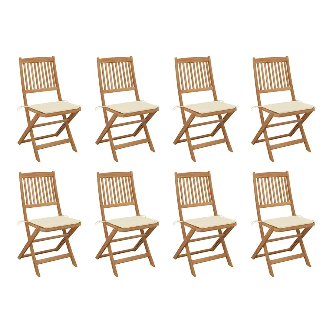 Chaises pliables d'extérieur et coussins lot de 8 Bois d'acacia