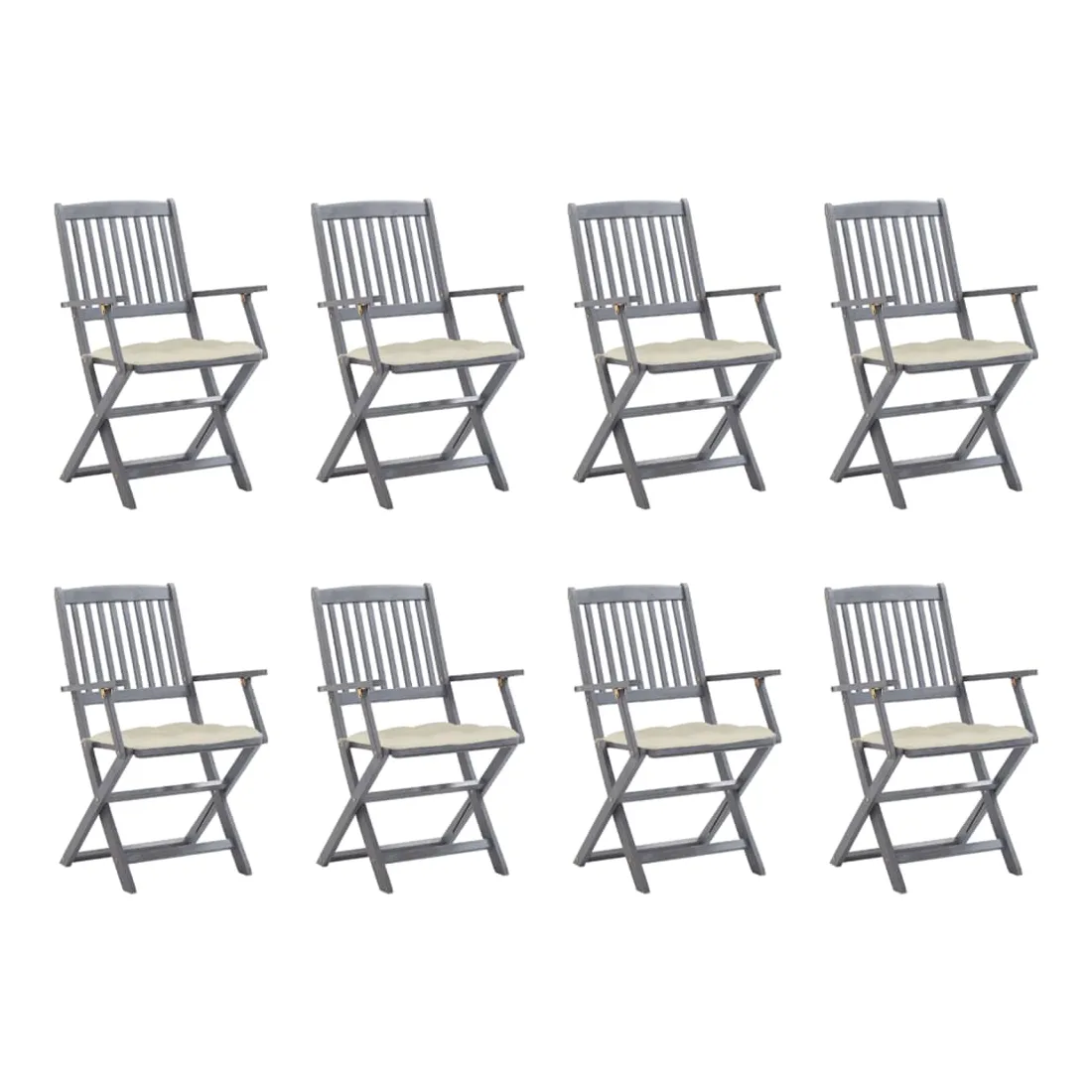 Chaises pliables d'extérieur lot de 8 et coussins Bois d'acacia