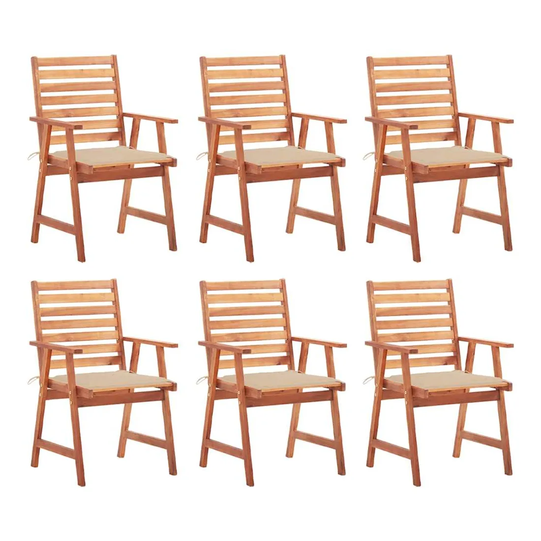 Chaises à manger d'extérieur lot de 6 et coussins Acacia massif
