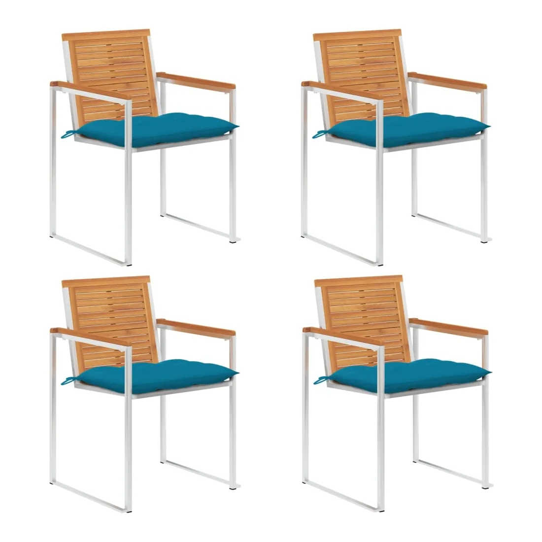 Ces chaises de jardin en bois sont conçues pour devenir le point de mire de votre jardin ou de votre patio. Les chaises de salle à manger sont fabriquées en bois d'acacia massif et en acier inoxydable de haute qualité, ce qui les rend très durables, résistantes à la rouille, robustes et faciles à nettoyer avec un chiffon humide. Le coussin inclus est plus qu'un supplément pratique, il a également une fonction décorative. Asseyez-vous pour un délicieux dîner en plein air ou détendez-vous et profitez du beau temps avec cet ensemble classique de chaises de jardin. Remarque : afin de prolonger la durée de vie de vos meubles d'extérieur, nous vous recommandons de les nettoyer régulièrement et de ne pas les laisser à l'extérieur sans protection inutilement.Nettoyage : Utiliser une solution savonneuse douce.Stockage : si possible, stockez dans un endroit frais et sec à l'intérieur. Si le produit est stocké à l'extérieur, protégez-le avec une housse imperméable. Essuyez et séchez l'excès d'eau ou de neige des surfaces planes après la pluie ou une chute de neige. Permettez une circulation d'air suffisante afin d'éviter les dommages liés à l'humidité.