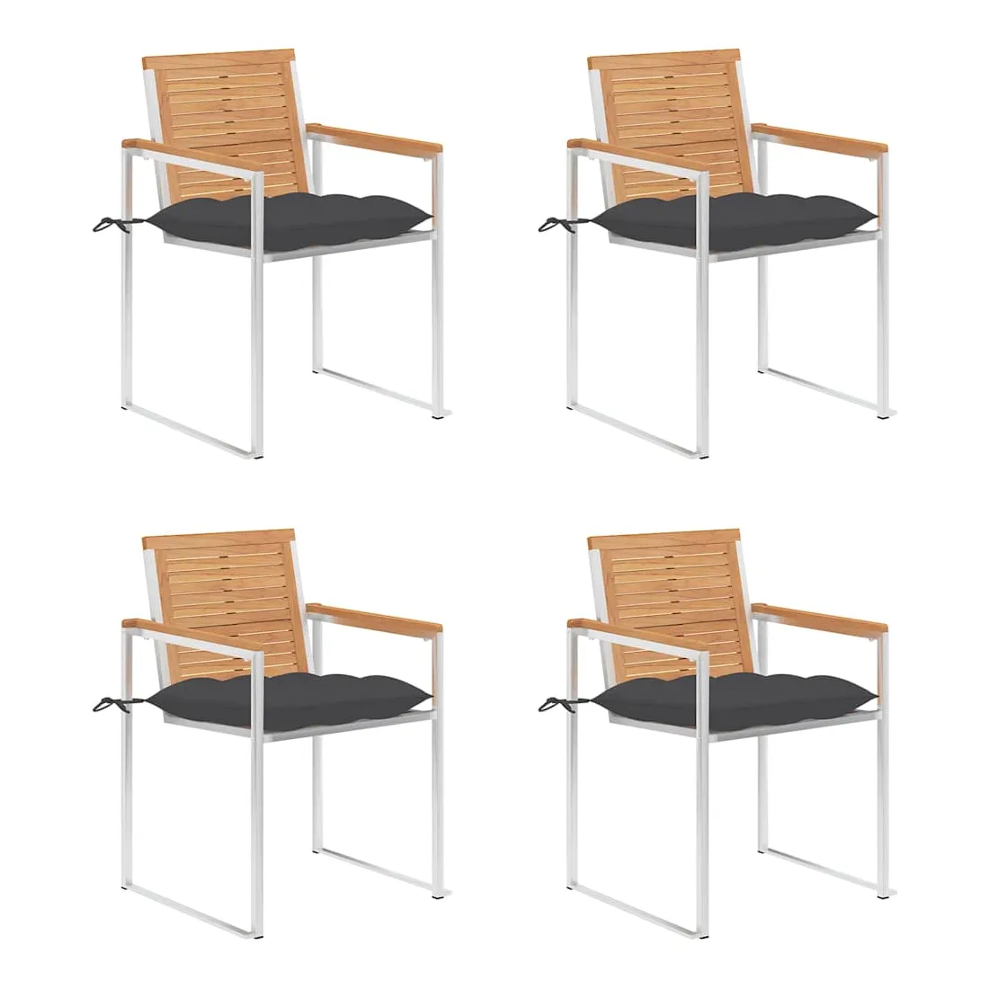 Chaises de jardin lot de 4 avec coussins Bois de teck massif