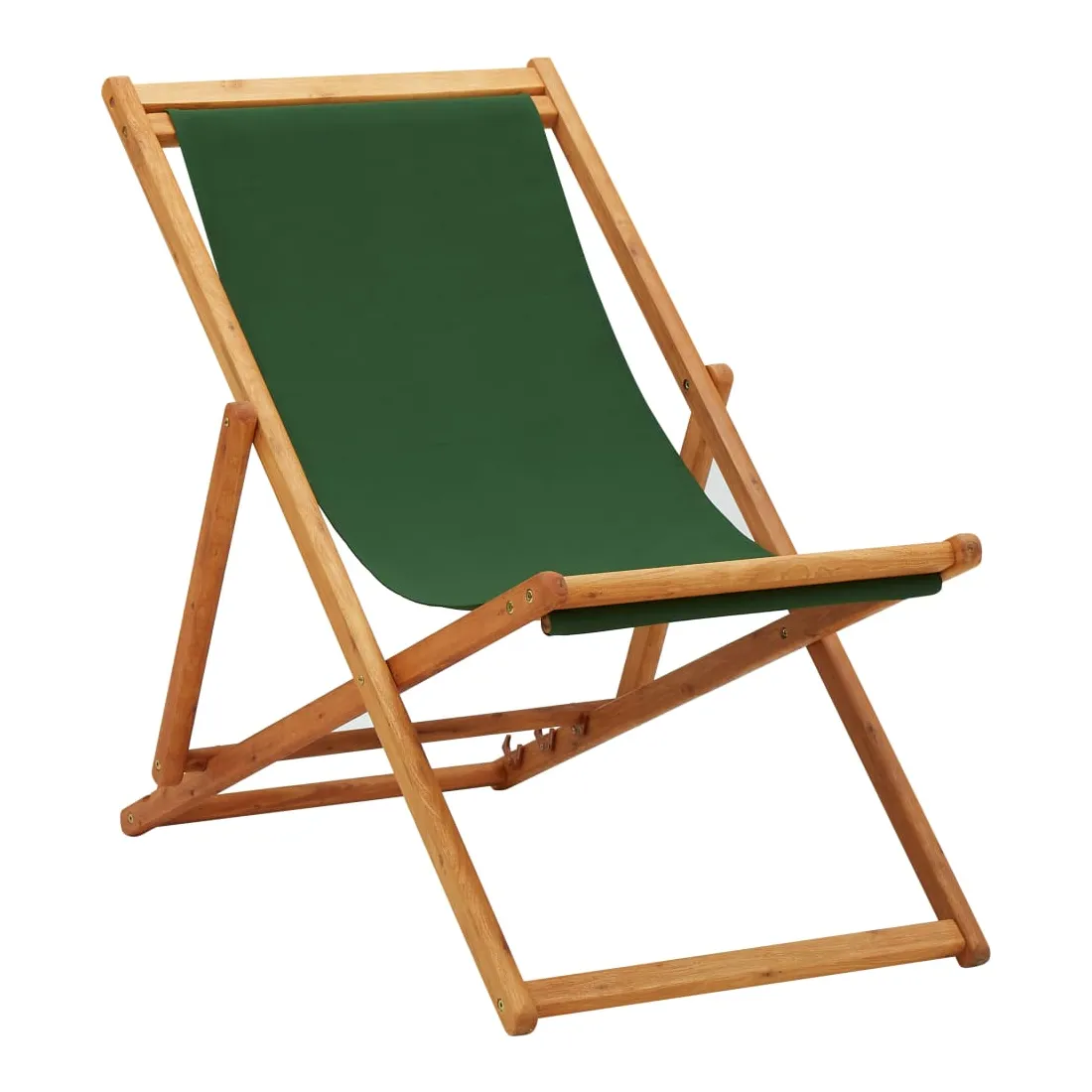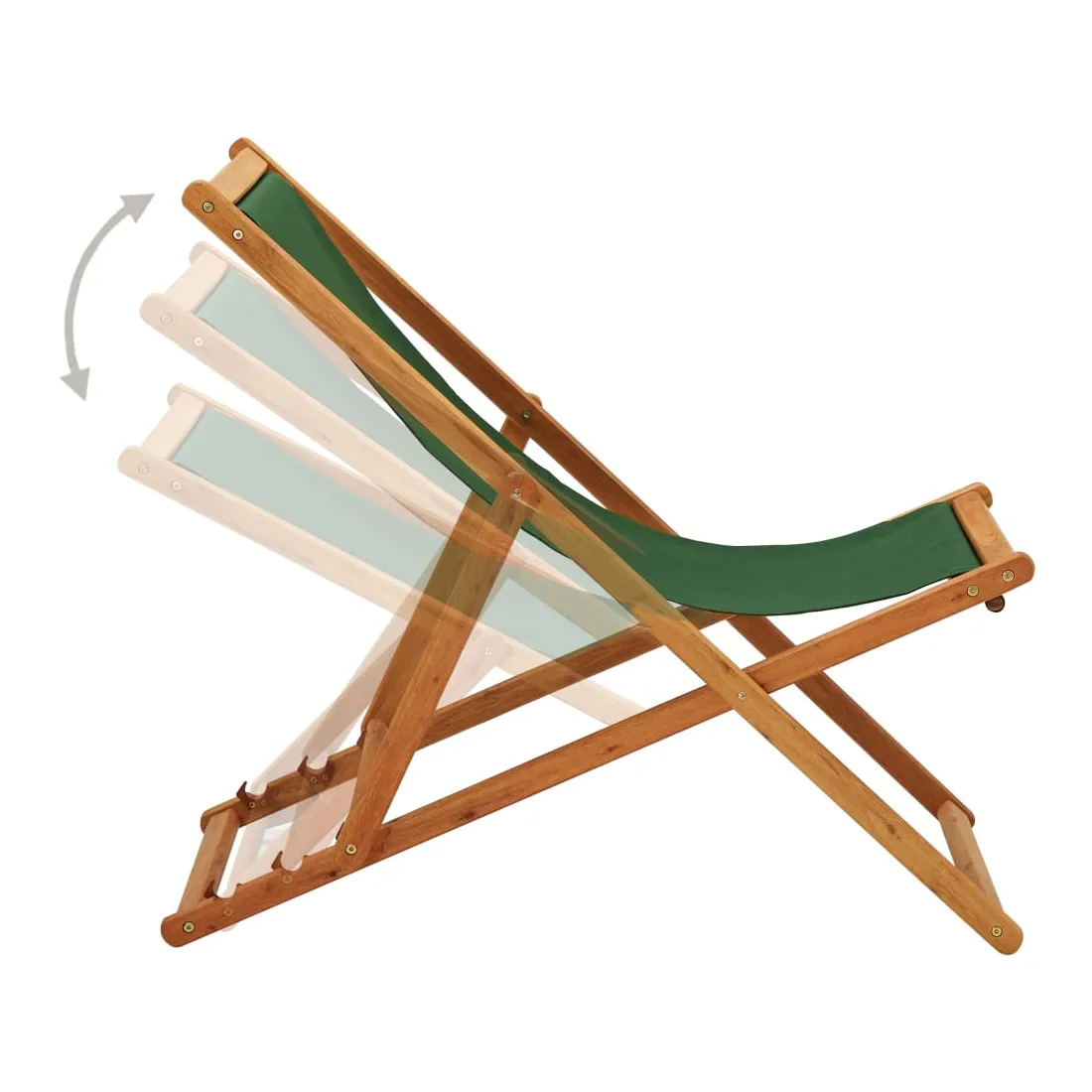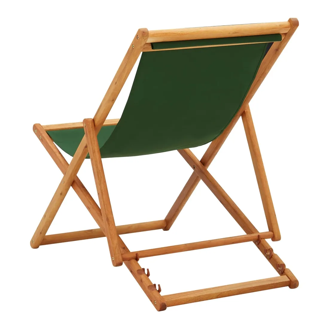 Chaise pliable de plage bois d'eucalyptus et tissu vert
