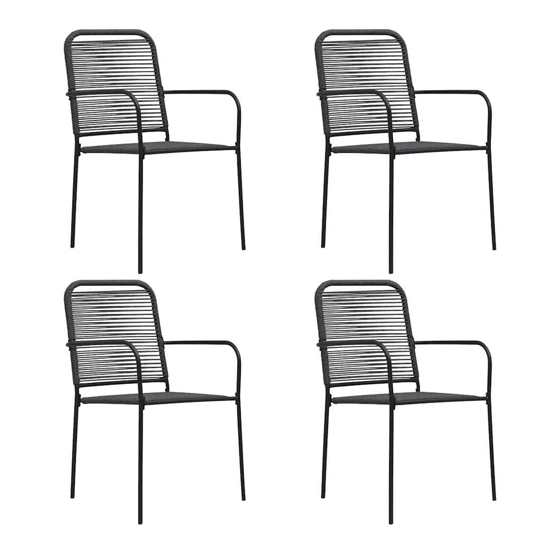 Cet ensemble de 4 chaises de jardin minimalistes offre un haut niveau de confort et de détente et est conçu pour compléter parfaitement tout espace extérieur dans un décor contemporain, moderne et traditionnel. Cet ensemble de chaises est en corde de coton tissée sur un cadre en acier enduit de poudre. Il est stable et résistant aux intempéries et aux rayons UV.