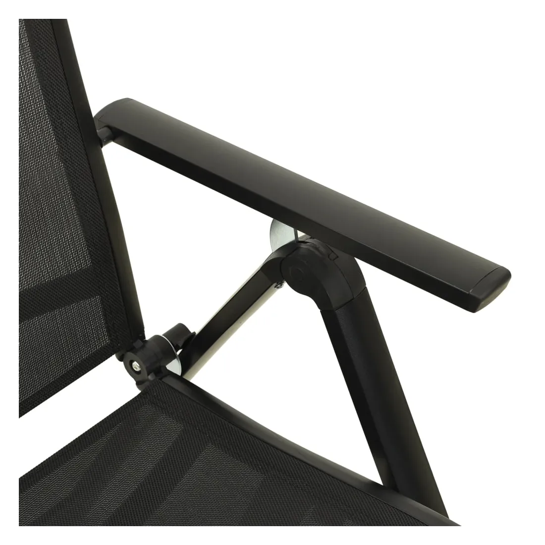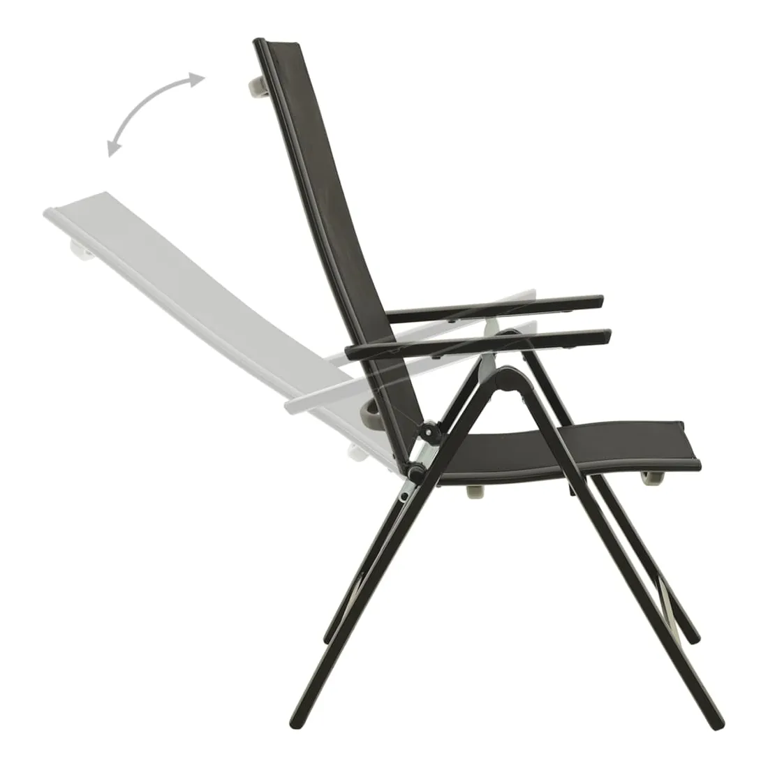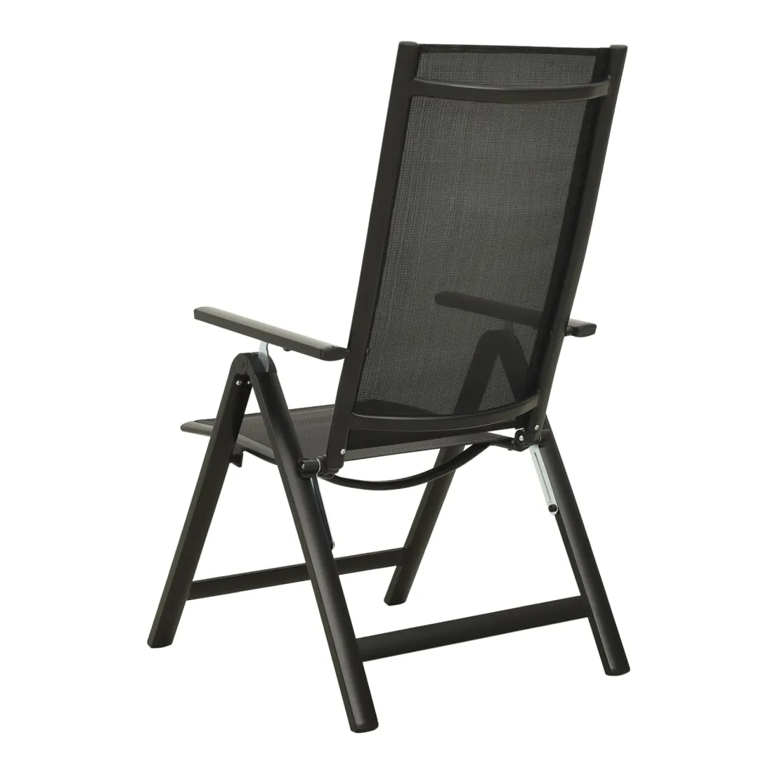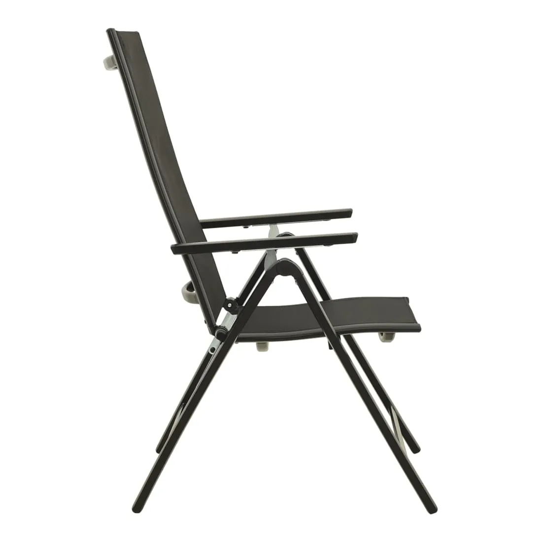 Profitez d'un temps de loisirs confortable avec vos amis ou votre famille dans votre espace extérieur sur cet ensemble de chaises de jardin pliables ! Le cadre en aluminium enduit de poudre rend la chaise d’extérieur robuste et durable, offrant un service à vie. Le fauteuil dispose d’un dossier réglable qui peut être incliné en 7 positions, de sorte que vous puissiez toujours trouver la position la plus confortable. Le siège est confortable avec textilène respirant. Remarque : afin de prolonger la durée de vie de vos meubles d'extérieur, nous vous recommandons de les nettoyer régulièrement et de ne pas les laisser à l'extérieur sans protection inutilement.Nettoyage : utiliser une solution savonneuse douceStockage : si possible, stockez dans un endroit frais et sec à l'intérieur. Si le produit est stocké à l'extérieur, protégez-le avec une housse imperméable. Essuyez et séchez l'excès d'eau ou de neige des surfaces planes après la pluie ou une chute de neige. Permettez une circulation d'air suffisante afin d'éviter les dommages liés à l'humidité.