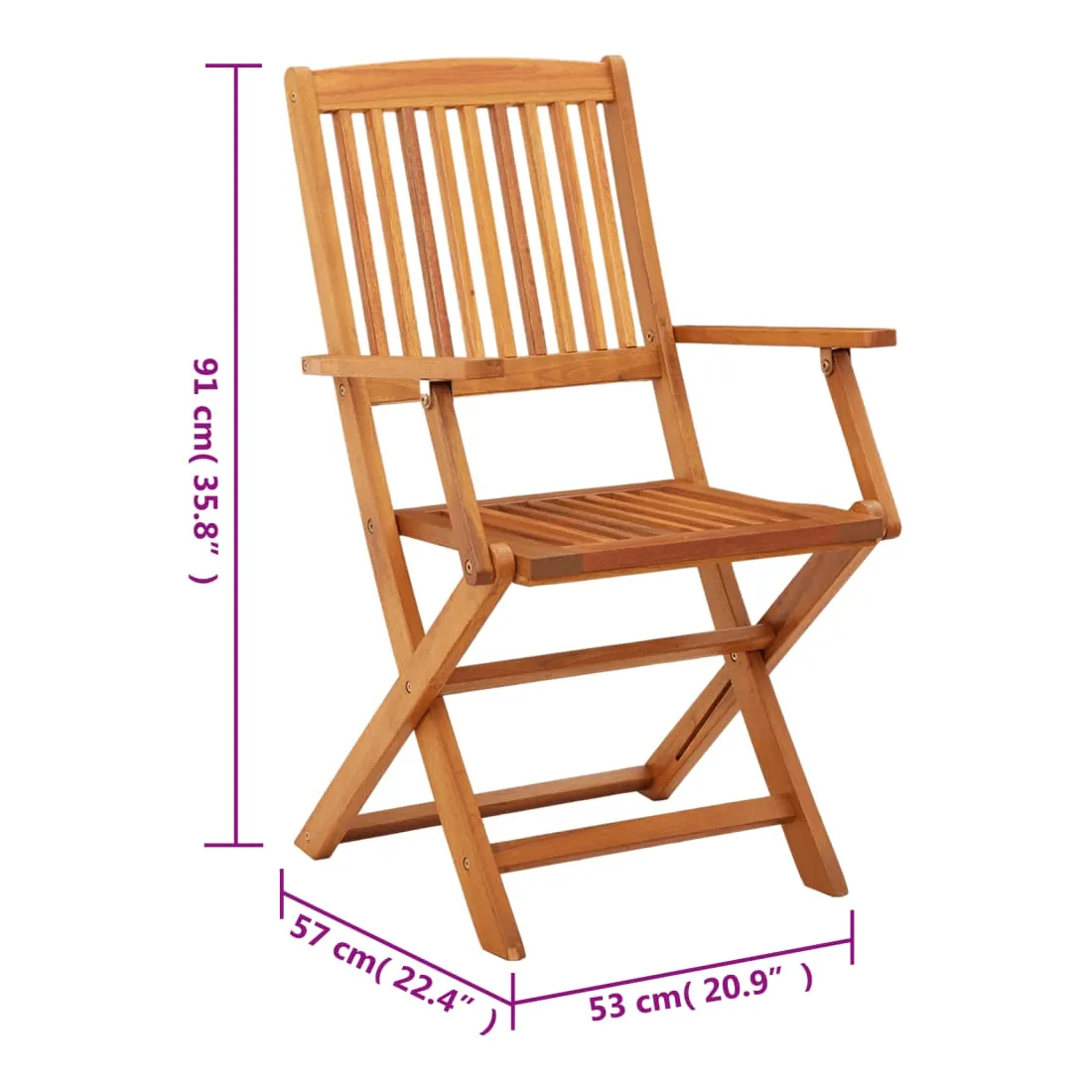 Cet ensemble de chaises de salle à manger contemporain en bois ajoutera une touche de style naturel à votre jardin, terrasse ou patio. Cet ensemble de chaises pliables sera un excellent choix pour les repas. La chaise de salle à manger est faite de bois d'eucalyptus qui est résistant aux intempéries et durable pendant des années d'utilisation. La surface à finition à l'huile est facile à nettoyer avec un chiffon humide. Les chaises peuvent être pliées pour économiser de l'espace lorsqu'elles ne sont pas utilisées. Remarque : afin de prolonger la durée de vie de vos meubles d'extérieur, nous vous recommandons de les nettoyer régulièrement et de ne pas les laisser à l'extérieur sans protection inutilement.Nettoyage : utiliser une solution savonneuse douceStockage : si possible, stockez dans un endroit frais et sec à l'intérieur. Si le produit est stocké à l'extérieur, protégez-le avec une housse imperméable. Essuyez et séchez l'excès d'eau ou de neige des surfaces planes après la pluie ou une chute de neige. Permettez une circulation d'air suffisante afin d'éviter les dommages liés à l'humidité.