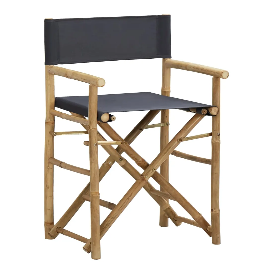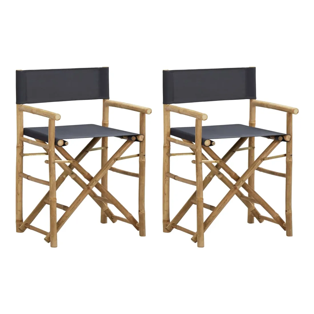 Chaises pliables de directeur lot de 2 Gris foncé Bambou tissu