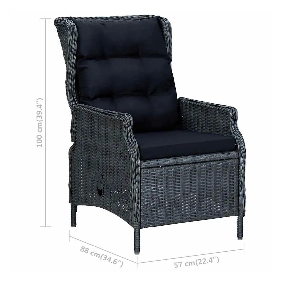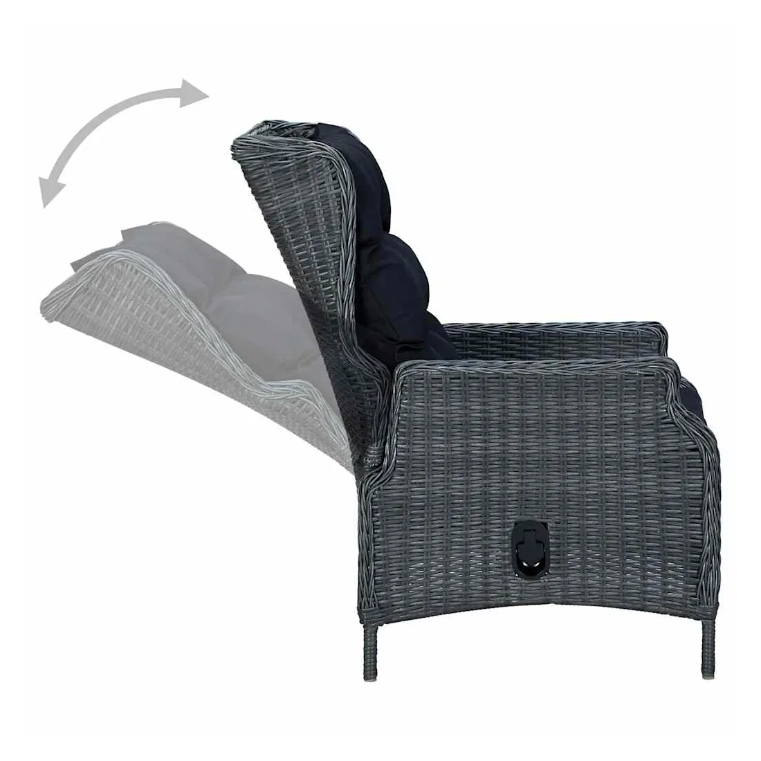 Cette chaise inclinable de jardin confortable est un excellent choix pour discuter avec la famille et les amis ou tout simplement profiter du soleil apaisant dans votre espace de vie extérieur. Cette chaise inclinable d'extérieur, dotée d'un cadre en acier enduit de poudre recouvert de résine tressée ronde, est robuste et facile à nettoyer. Les coussins bien rembourrés ajoutent un confort supplémentaire lors de votre temps de détente. La housse de coussin est équipée d’une fermeture éclair, amovible et lavable. Grâce au mécanisme de levage à gaz, le dossier est également réglable pour s’adapter à vos positions. En appuyant sur le bouton sur le côté, le dossier peut s’incliner, pour une position couchée confortable. De plus, la chaise de jardin est facile à déplacer grâce à sa construction légère. Remarque importante : nous vous recommandons de couvrir la chaise pendant la pluie, la neige et le gel pour que son meilleur service dure.