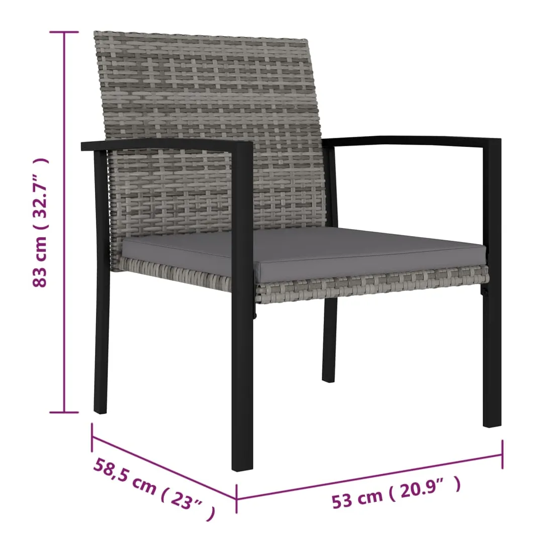 • Dimensions de la chaise : 53 x 58,5 x 83 cm (l x P x H)