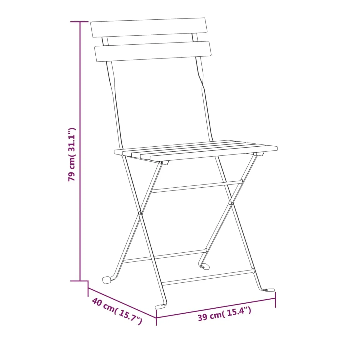 Ces chaises pliables en bois de jardin seront un excellent supplément à votre jardin, balcon ou patio. Bois d'acacia massif : le bois d'acacia massif est un matériau naturel magnifique. Le bois d'acacia un bois dur tropical, qui est dense, robuste et durable.Cadre en acier : le cadre en acier de la chaise pliante assure robustesse et stabilité.Conception pliable : vous pouvez plier la chaise pour gagner de la place lorsqu'elle n'est pas utilisée. Remarque :Chaque produit est livré avec un manuel de montage dans la boîte pour un assemblage facile.Afin de prolonger la durée de vie de votre mobilier d'extérieur, nous vous recommandons de le protéger avec une housse imperméable.