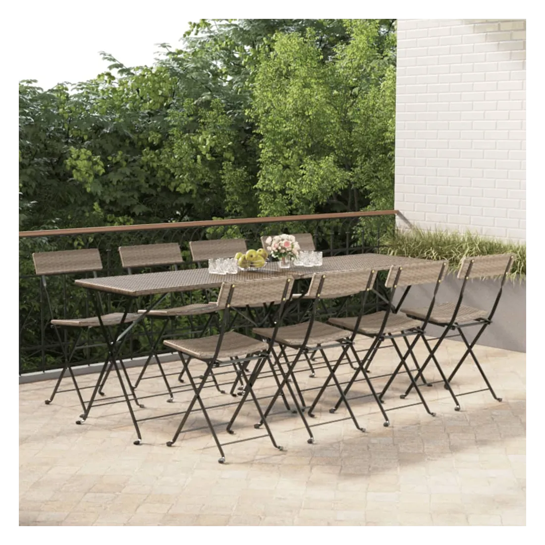 Ces chaises de bistrot pliantes sont le complément parfait à votre jardin et à votre terrasse, créant une impression durable ! Matériau durable : la résine tressée, également connue sous le nom de rotin poly, résiste aux intempéries et est facile à nettoyer. Elle reste belle à l'extérieur pendant une longue période. Elle est plus économique que d'autres matériaux, tout en offrant une excellente qualité, une commodité et un aspect esthétique.Cadre stable : le cadre en acier enduit de poudre assure la robustesse et la stabilité.Design pliable : les chaises peuvent être facilement repliées lorsqu'elles ne sont pas utilisées pour faciliter le rangement et le transport. Bon à savoir :Pour faciliter au maximum le montage, chaque produit est livré avec des instructions. Remarque :Pour que vos meubles d'extérieur restent beaux, nous vous recommandons de les protéger avec une housse imperméable.