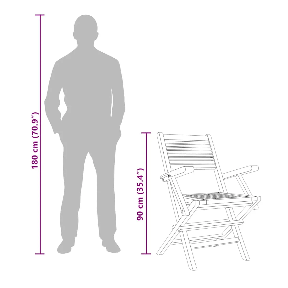 Profitez d'un moment de détente agréable avec votre famille et vos amis dans votre espace extérieur sur ces chaises de jardin pliantes en bois ! Bois de teck massif : le bois de teck massif est un matériau naturel magnifique. Il a été chevronné, séché au four, puis sablé finement pour lui donner une apparence très lisse. Le bois de teck est connu pour sa résistance exceptionnelle et sa résistance aux intempéries.Fonction pliable : la chaise de jardin peut être pliée pour gagner de la place lorsqu'elle n'est pas utilisée.Expérience confortable : le dossier et les accoudoirs des sièges de jardin vous offrent un excellent soutien, offrant une expérience confortable optimale.Design à lattes : la chaise d'extérieur au design à lattes est simple et intemporelle. Remarque :Pour que vos meubles d'extérieur restent beaux, nous vous recommandons de les protéger avec une housse imperméable.Bon à savoir :Pour faciliter au maximum le montage, chaque produit est livré avec des instructions.