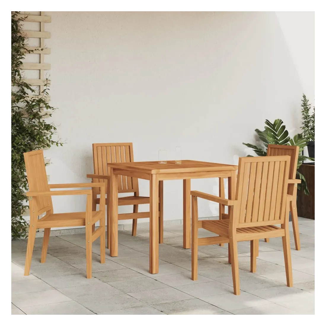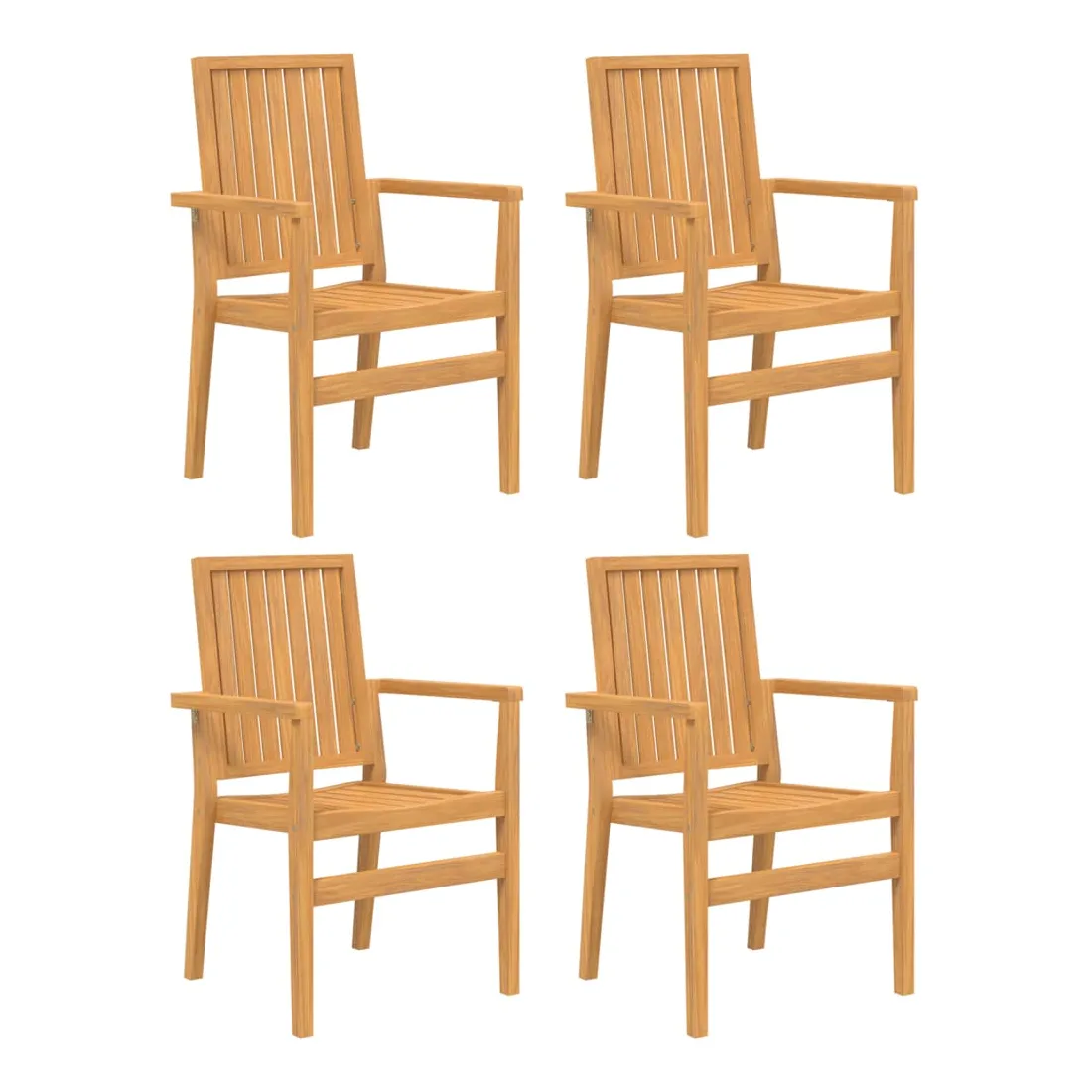 Ces chaises de jardin empilables en bois présentent un design classique et seront un excellent supplément à votre jardin, patio ou terrasse. Bois de teck massif : le bois de teck massif est un matériau naturel magnifique. Il a été chevronné, séché au four, puis sablé finement pour lui donner une apparence très lisse. Le bois de teck est connu pour sa résistance exceptionnelle et sa résistance aux intempéries.Expérience d'assise confortable : dotée d'accoudoirs et d'un dossier, la chaise de jardin vous offre le plus grand confort.Conception empilable : la chaise de jardin est empilable pour économiser de l'espace de stockage lorsqu'elle n'est pas utilisée. Bon à savoir :Pour que vos meubles d'extérieur restent beaux, nous vous recommandons de les protéger avec une housse imperméable.