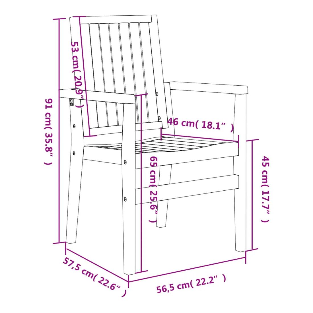 - Dimensions (chacune) : 56,5 x 57,5 x 91 cm (l x P x H)