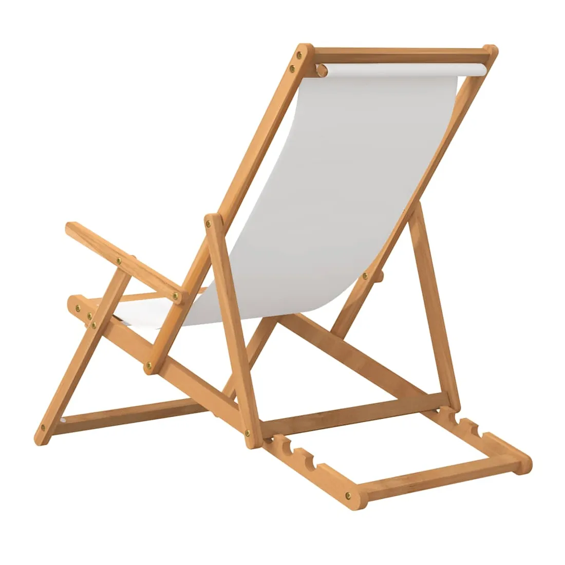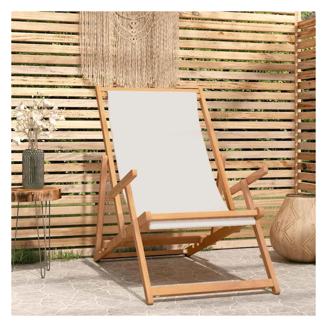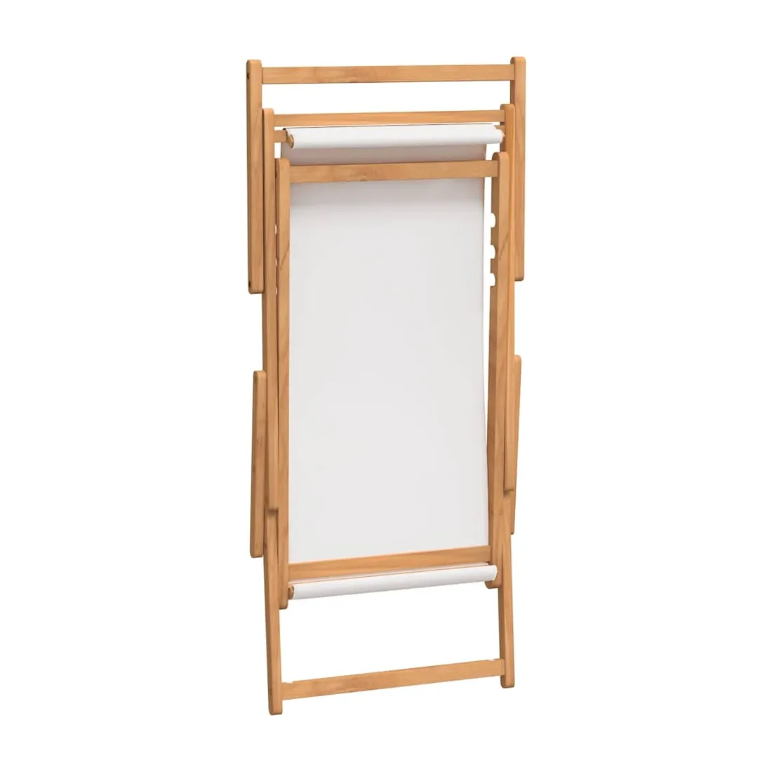 Cette chaise de plage pliable présente un design emblématique et est un choix parfait pour votre jardin ou pour la plage ou le camping. Matériau de première qualité : le bois de teck massif est un matériau naturel magnifique. Traitez la surface avec de l'huile, de la cire, de la laque ou une finition vitrée pour obtenir une surface plus résistante et un nettoyage facile. Le bois de teck est très robuste et résistant aux intempéries. Siège confortable : le siège et le dossier en tissu ajoutent au confort d'assise de la chaise. Le dossier peut être ajusté afin que vous puissiez trouver la position assise ou allongée la plus confortable possible. Rangement facile : la chaise de terrasse se plie facilement et peut être facilement rangée pour économiser de l'espace. Remarque :Afin de prolonger la durée de vie de votre mobilier d'extérieur, nous vous recommandons de le protéger avec une housse imperméable.