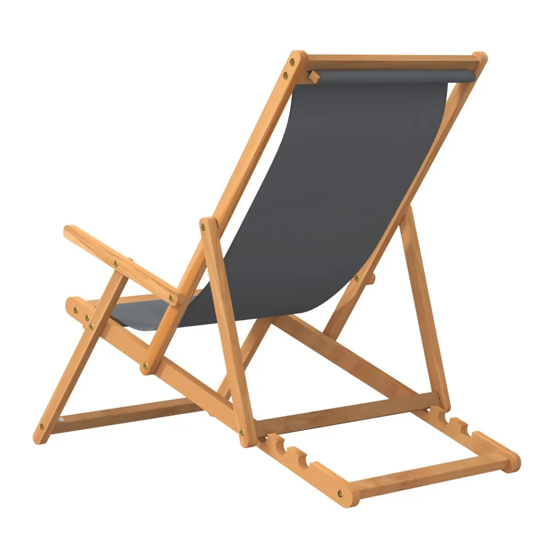 Cette chaise de plage pliable présente un design emblématique et est un choix parfait pour votre jardin ou pour la plage ou le camping. Matériau de première qualité : le bois de teck massif est un matériau naturel magnifique. Traitez la surface avec de l'huile, de la cire, de la laque ou une finition vitrée pour obtenir une surface plus résistante et un nettoyage facile. Le bois de teck est très robuste et résistant aux intempéries. Siège confortable : le siège et le dossier en tissu ajoutent au confort d'assise de la chaise. Le dossier peut être ajusté afin que vous puissiez trouver la position assise ou allongée la plus confortable possible. Rangement facile : la chaise de terrasse se plie facilement et peut être facilement rangée pour économiser de l'espace. Remarque :Afin de prolonger la durée de vie de votre mobilier d'extérieur, nous vous recommandons de le protéger avec une housse imperméable.