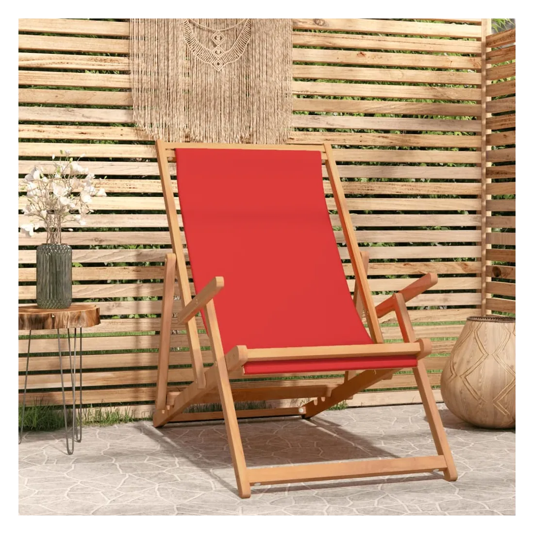 Cette chaise de plage pliable présente un design emblématique et est un choix parfait pour votre jardin ou pour la plage ou le camping. Matériau de première qualité : le bois de teck massif est un matériau naturel magnifique. Traitez la surface avec de l'huile, de la cire, de la laque ou une finition vitrée pour obtenir une surface plus résistante et un nettoyage facile. Le bois de teck est très robuste et résistant aux intempéries. Siège confortable : le siège et le dossier en tissu ajoutent au confort d'assise de la chaise. Le dossier peut être ajusté afin que vous puissiez trouver la position assise ou allongée la plus confortable possible. Rangement facile : la chaise de terrasse se plie facilement et peut être facilement rangée pour économiser de l'espace. Remarque :Afin de prolonger la durée de vie de votre mobilier d'extérieur, nous vous recommandons de le protéger avec une housse imperméable.