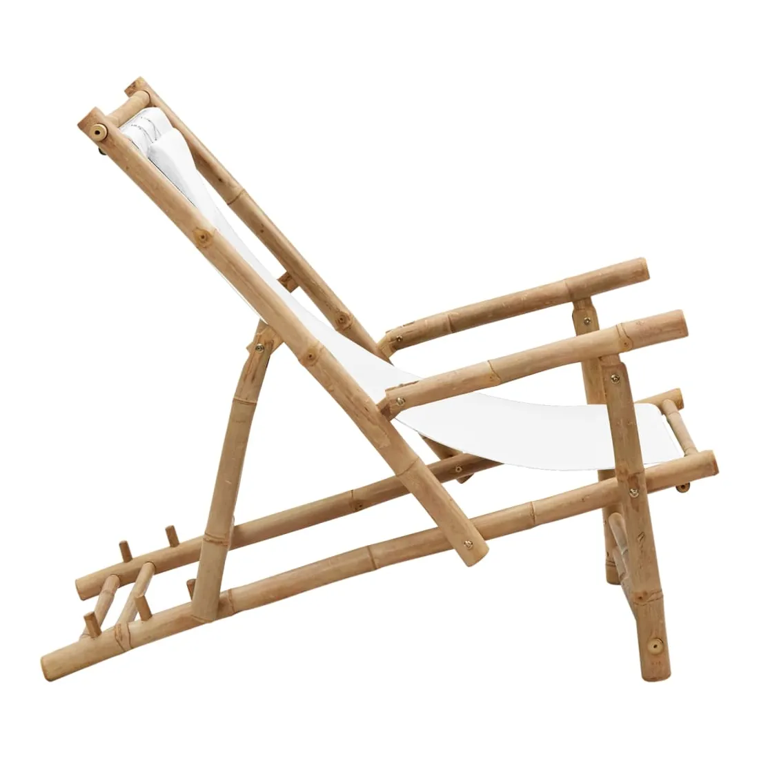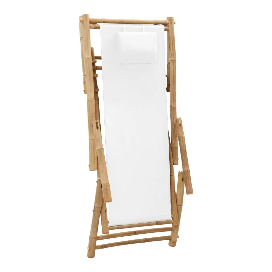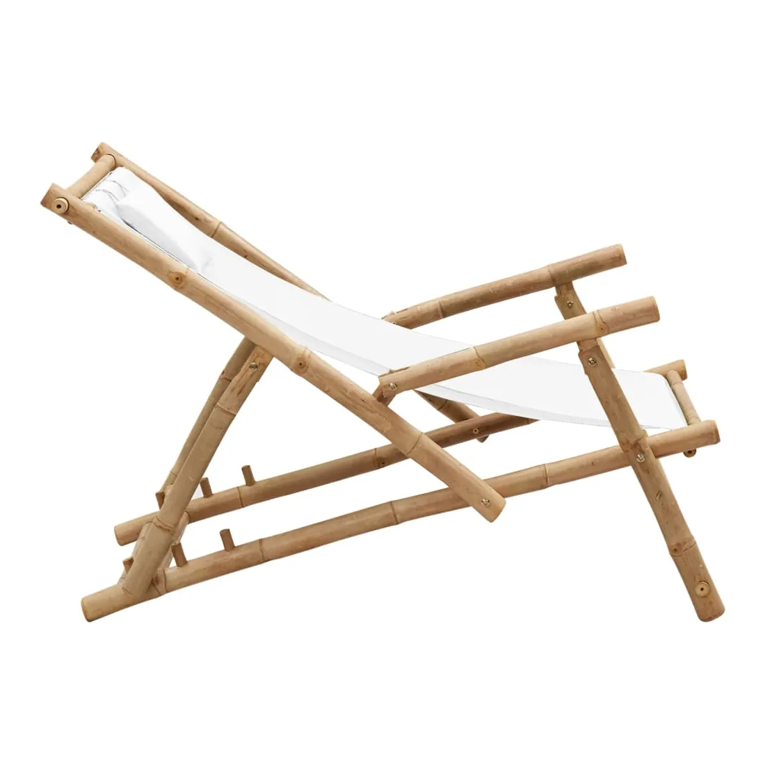 Cette chaise de terrasse en bambou réglable en hauteur avec accoudoirs est conçue pour être un supplément fabuleux à votre jardin, patio ou terrasse. Matériau de première qualité : la toile est un tissu uni largement utilisé, connu pour sa robustesse, sa résistance à l'eau, sa légèreté et son utilisation intensive. De plus, il a un tissage plus serré que la plupart des tissus tissés, ce qui le rend plus rigide et durable.Cadre stable : le cadre de la chaise est fabriqué en bambou , qui est extrêmement durable. Le matériau ne change pas de couleur pendant longtemps et empêche la chaise de plage de se fissurer et de se déformer.Design pliable : la chaise longue peut être pliée pour économiser de l'espace lorsqu'elle n'est pas utilisée.Dossier réglable : grâce au dossier réglable, la chaise de jardin en bambou peut être ajustée en 3 positions. Par conséquent, vous pouvez profiter d'un confort maximal. Remarque :Afin de prolonger la durée de vie de votre mobilier d'extérieur, nous vous recommandons de le protéger avec une housse imperméable.