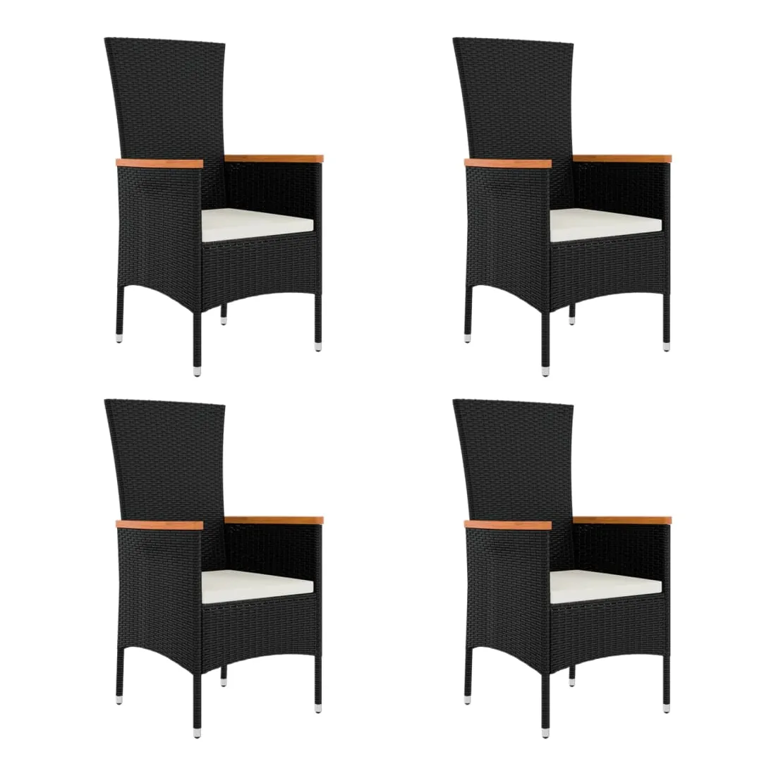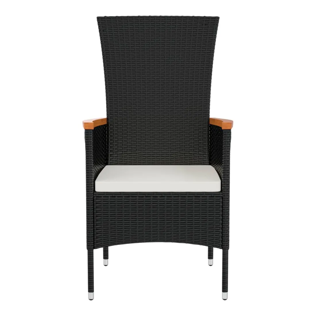 Ces chaises de jardin sont un complément parfait à votre jardin et à votre terrasse, créant une impression durable ! Matériau durable : la résine tressée, également connue sous le nom de rotin poly, résiste aux intempéries et est facile à nettoyer. Elle reste belle à l'extérieur pendant une longue période. Elle est plus économique que d'autres matériaux, tout en offrant une excellente qualité, une commodité et un aspect esthétique. Cadre stable : l'acier est un matériau exceptionnellement dur et résistant. Il offre robustesse et stabilité.Expérience de siège confortable : avec les coussins de siège bien rembourrés, les chaises sont très confortables.Accoudoirs élégants : les accoudoirs des chaises d'extérieur sont décorés avec du bois d'acacia massif, ce qui apporte une touche de charme rustique. Bon à savoir :Pour faciliter au maximum le montage, chaque produit est livré avec des instructions. Remarque :Pour que vos meubles d'extérieur restent beaux, nous vous recommandons de les protéger avec une housse imperméable.