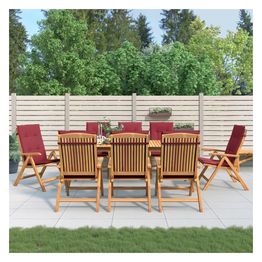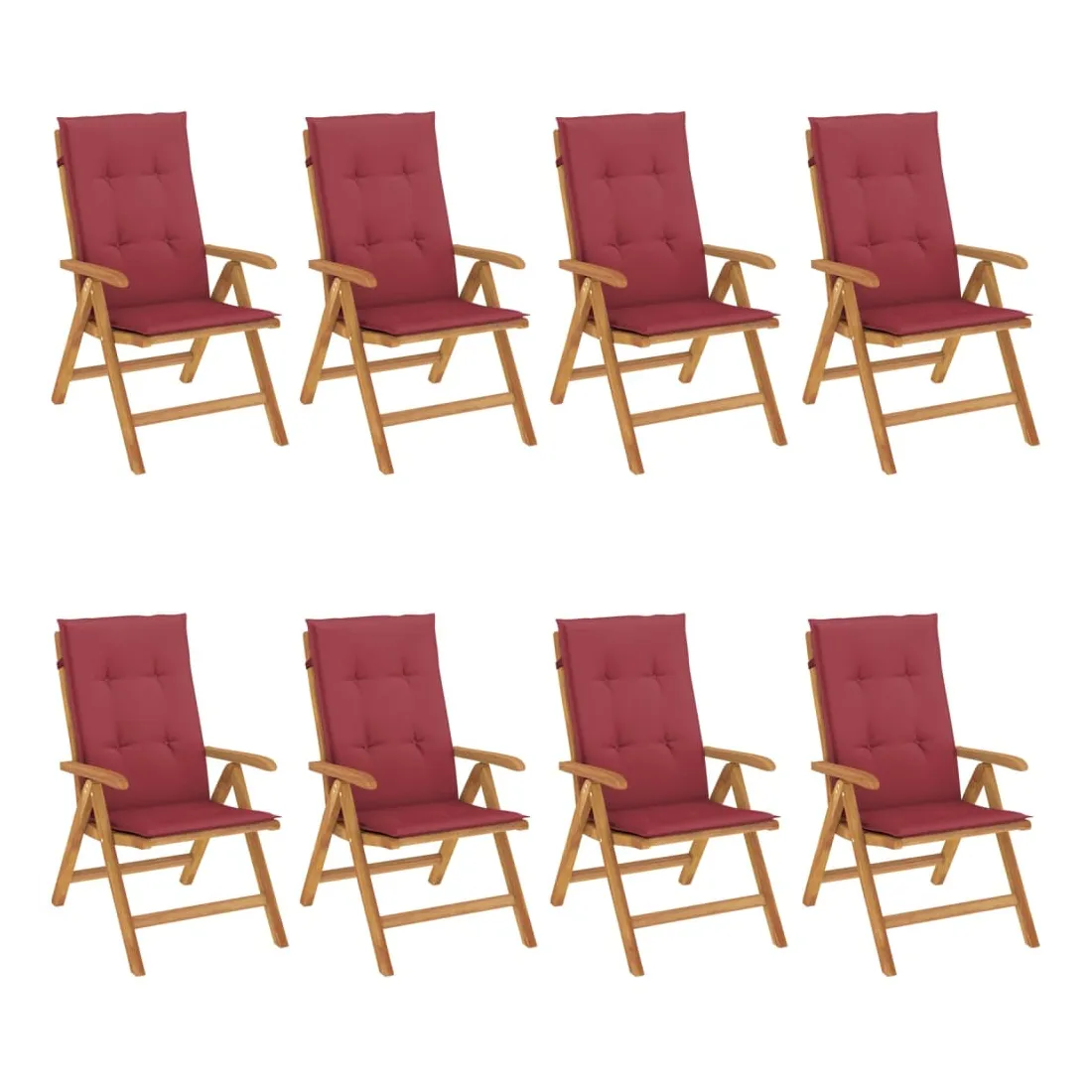 Améliorez le confort de votre espace extérieur avec ces chaises de jardin en bois classiques. Elles sont idéales pour discuter en famille et entre amis ou simplement pour profiter du bain de soleil ! Bois de teck massif : le bois de teck massif est un matériau naturel magnifique. Il a été chevronné, séché au four, puis sablé finement pour lui donner une apparence très lisse. Le bois de teck est connu pour sa résistance exceptionnelle et sa résistance aux intempéries.Dossier réglable : les dossiers des chaises de jardin sont réglables en 6 positions afin que vous puissiez toujours trouver la position la plus confortable.Fonction pliable : la chaise de jardin est pliable, ce qui vous permet de la replier pour gagner de la place lorsque vous ne l'utilisez pas.Assise confortable : la chaise d'extérieur, avec son assise à lattes, ses accoudoirs et son dossier incurvés, s'adapte à votre corps et vous offre un confort optimal. De plus, le coussin moelleux offre un confort d'assise optimal.Coussin antidérapant : des cordes bien conçues et une sangle arrière élastique permettent de fixer facilement le coussin à la chaise et de le maintenir proprement et en toute sécurité. Bon à savoir :Pour que vos meubles d'extérieur restent beaux, nous vous recommandons de les protéger avec une housse imperméable.